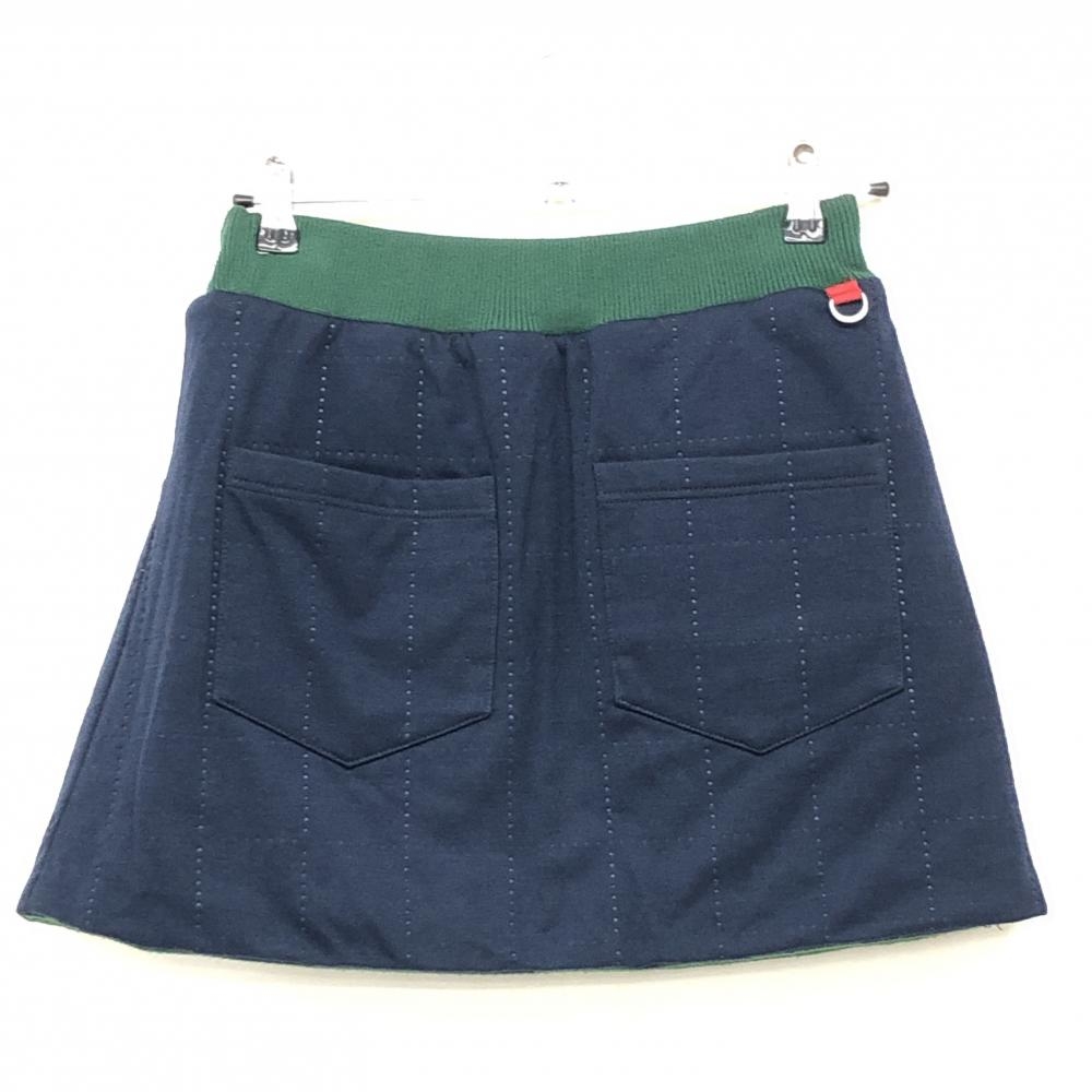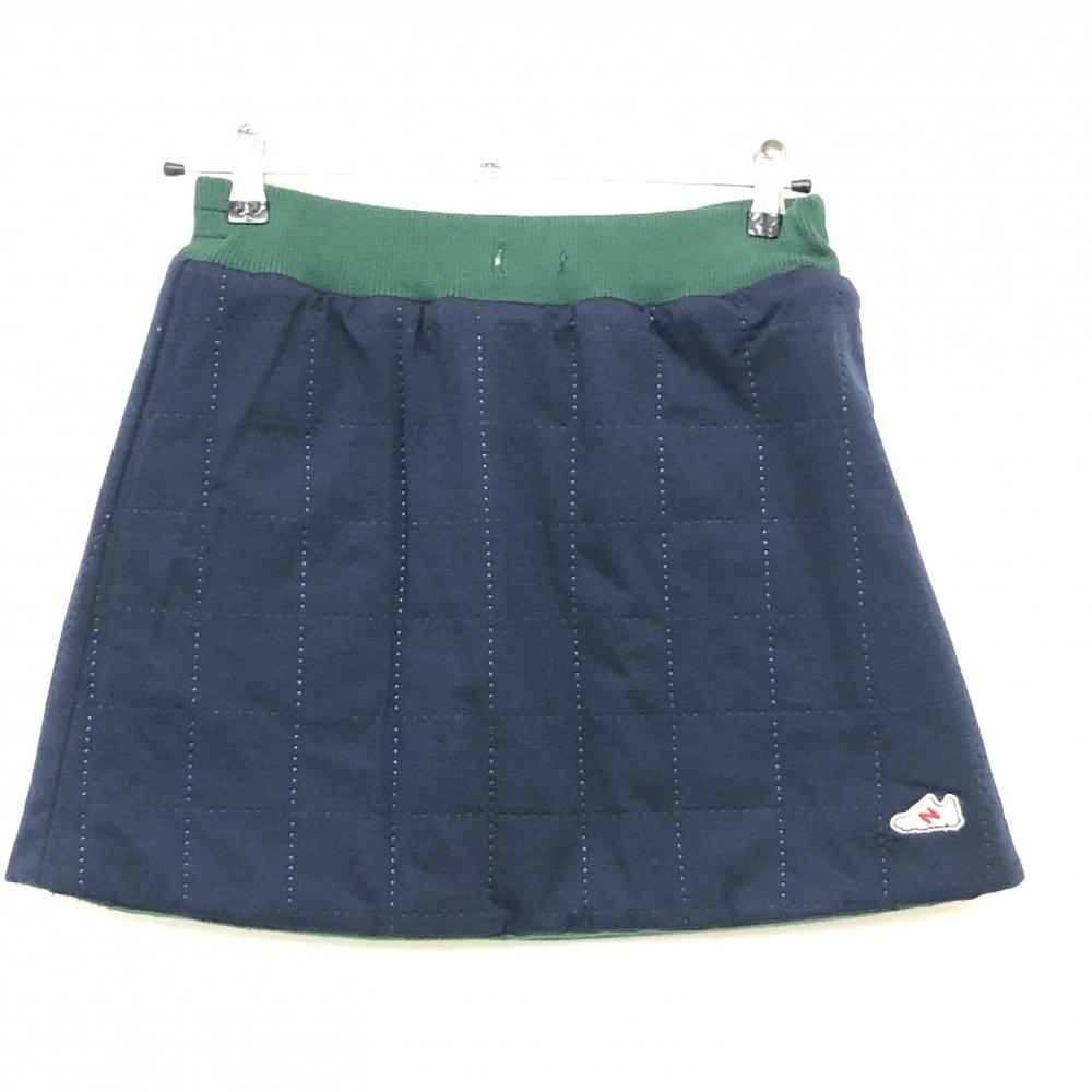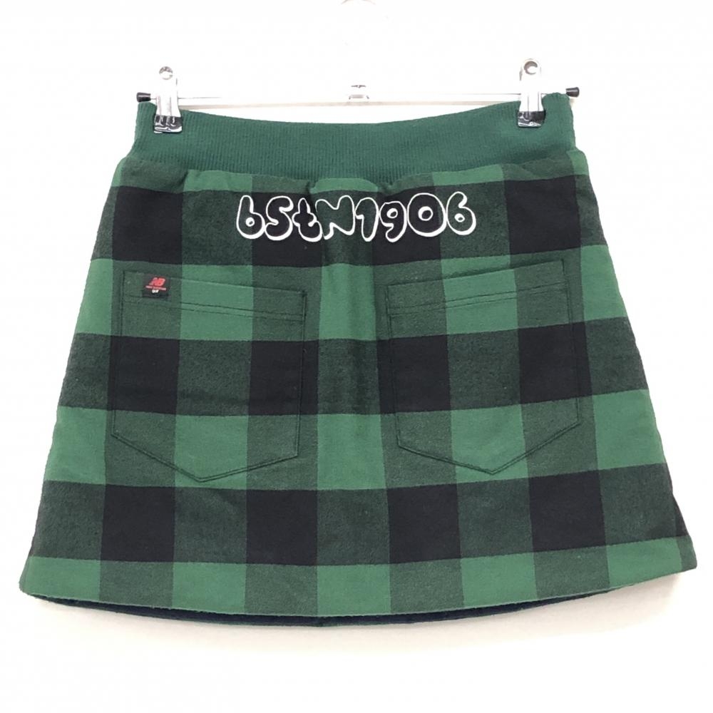 ニューバランス 中綿リバーシブルスカート グリーン×黒 チェック 裏ネイビー レディース 0(S) ゴルフウェア New Balance