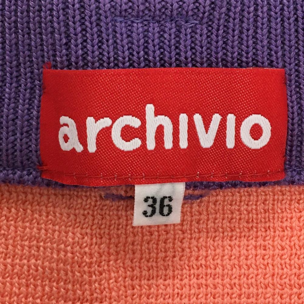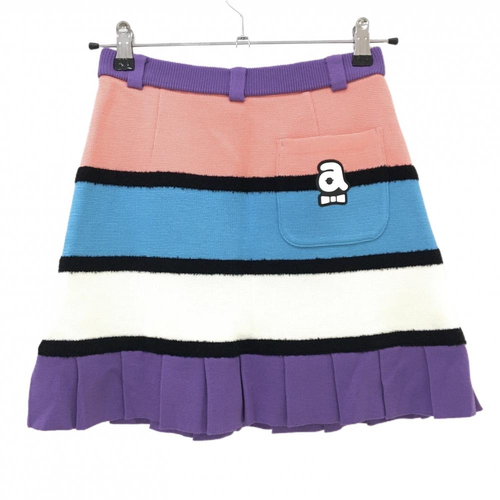 【超美品】アルチビオ ニットスカート ピンク×ライトブルー×パープル ボーダー 裾プリーツ レディース 36(S) ゴルフウェア archivio