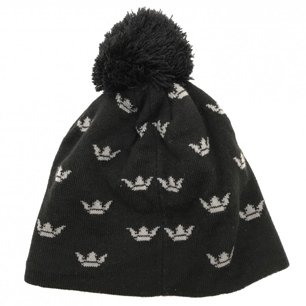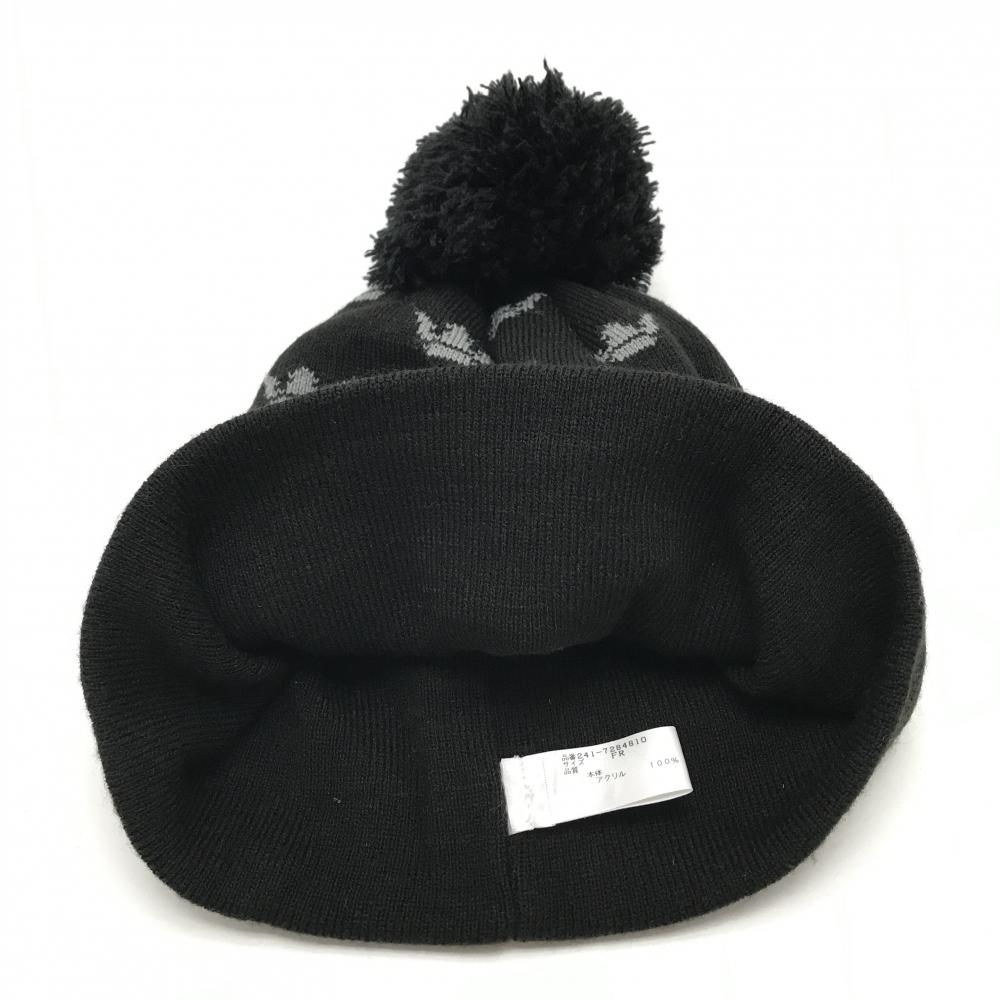 【超美品】キャロウェイ ニット帽 黒×グレー 総柄 ボンボン付 FR ゴルフウェア Callaway
