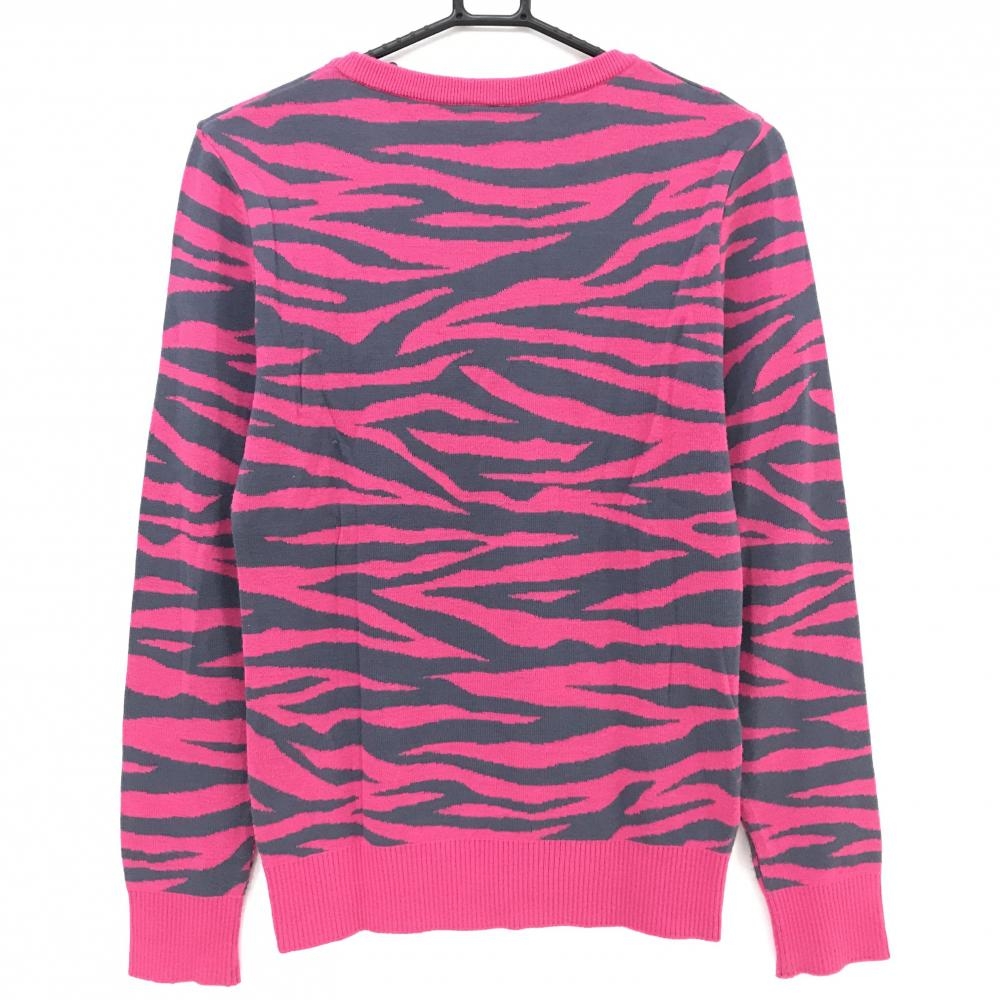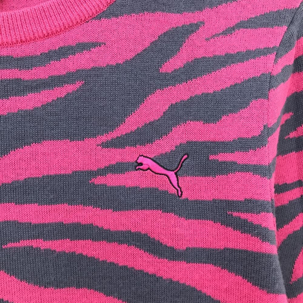 プーマ セーター ピンク×グレー ゼブラ柄 ウール混 ニット レディース O(XL) ゴルフウェア PUMA