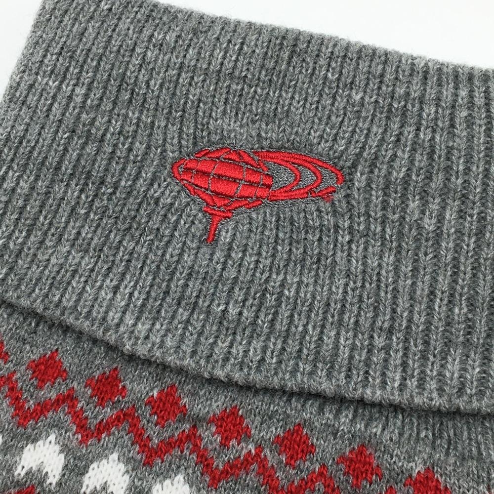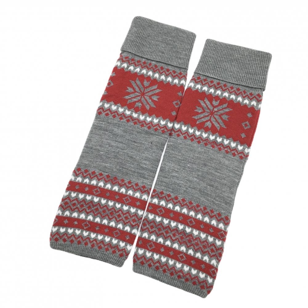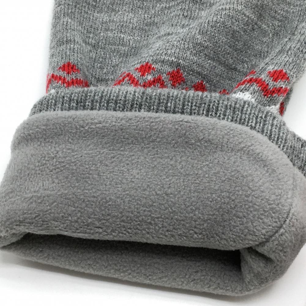 【超美品】ビームスゴルフ ニットレッグウォーマー グレー×レッド 総柄 裏フリース レディース ゴルフウェア BEAMS GOLF