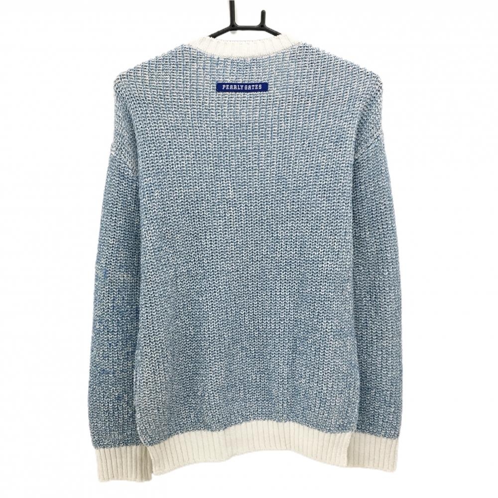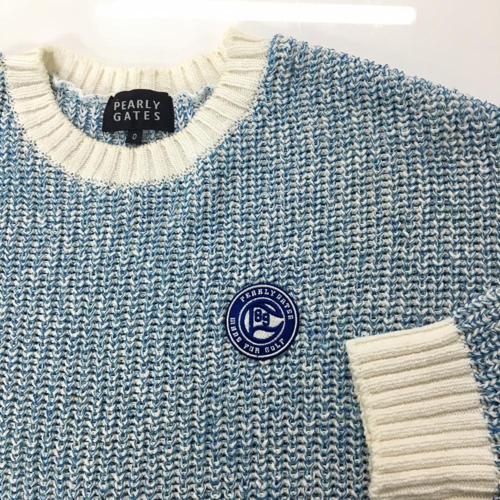 パーリーゲイツ セーター ライトブルー×白 ワッペン コットン混 ニット レディース 0(S) ゴルフウェア PEARLY GATES
