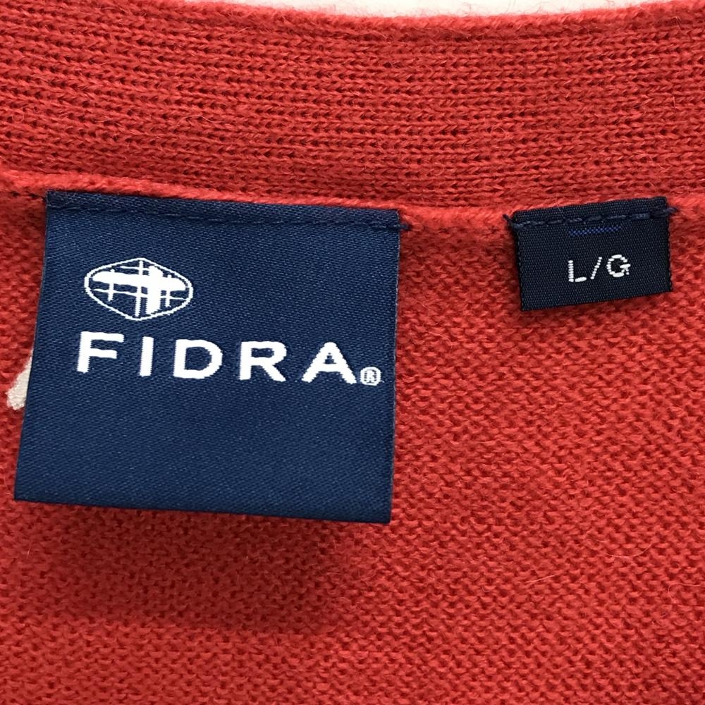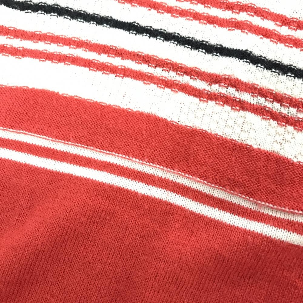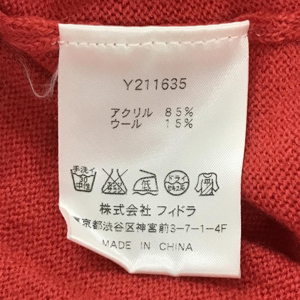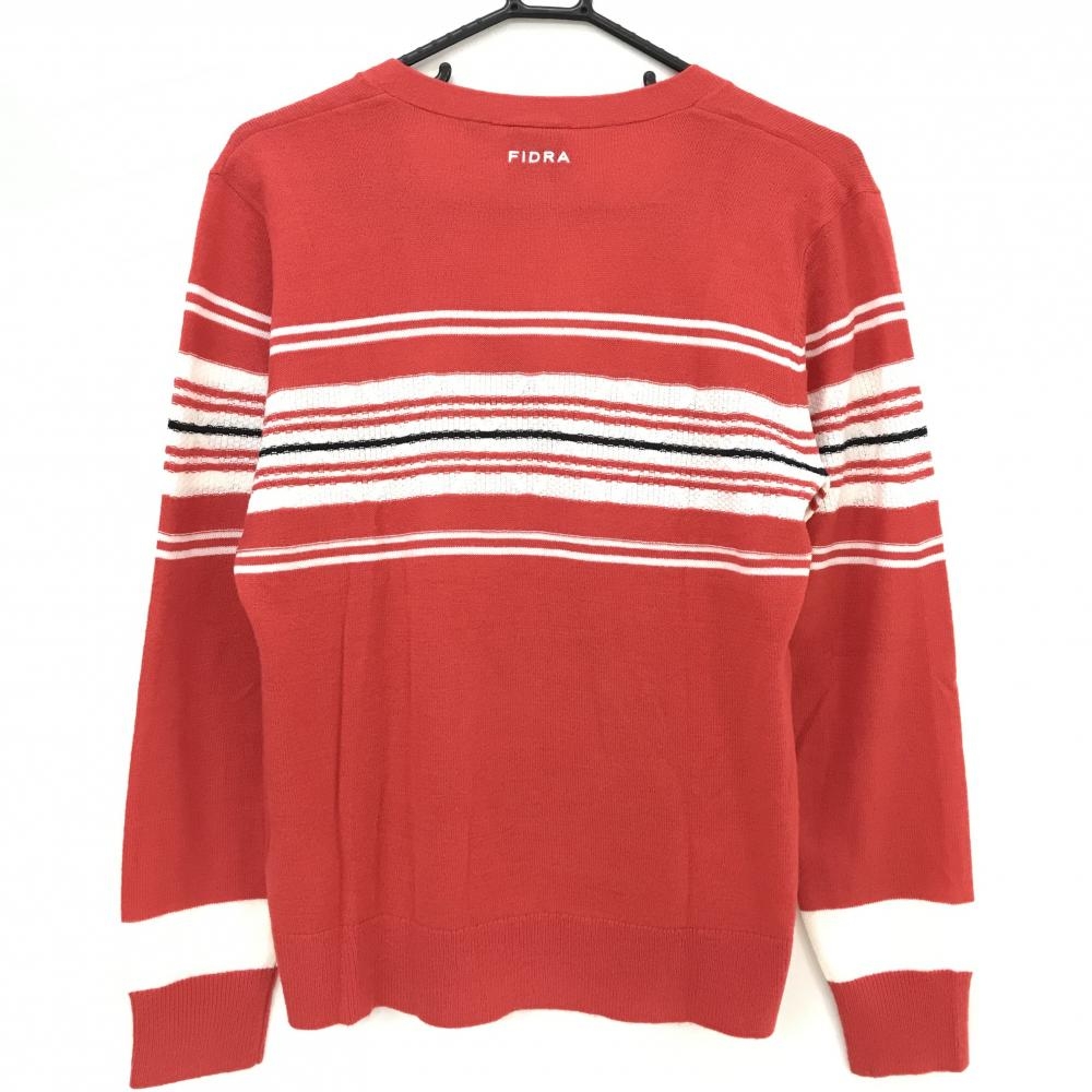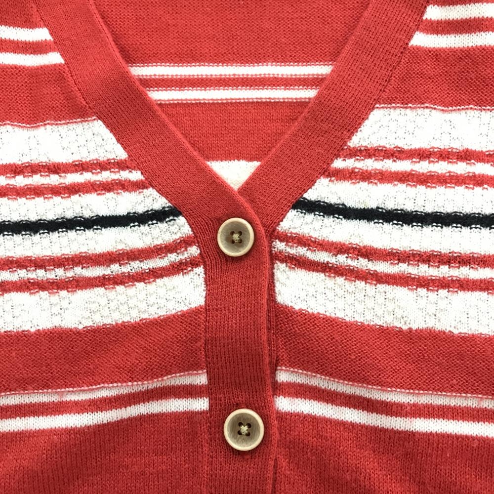 【超美品】フィドラ カーディガン レッド×白 胸ボーダー ウール混 レディース L/G ゴルフウェア FIDRA