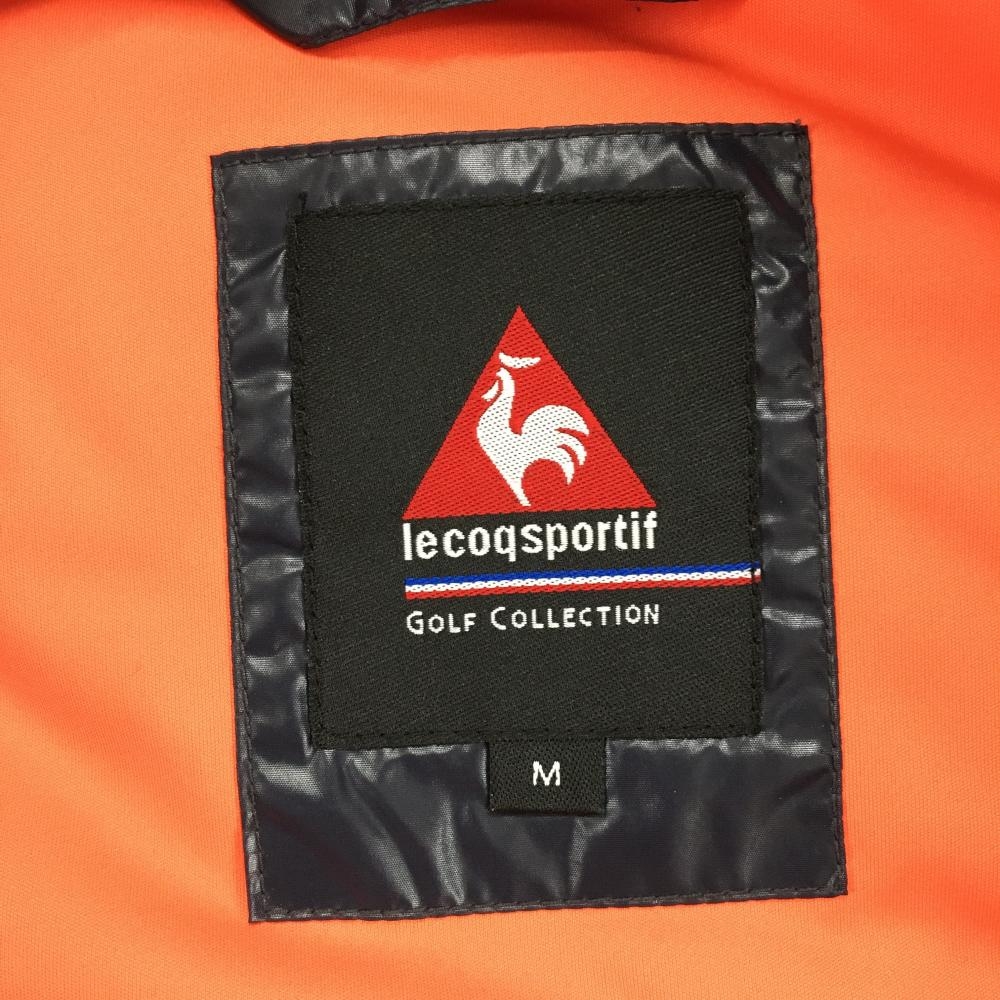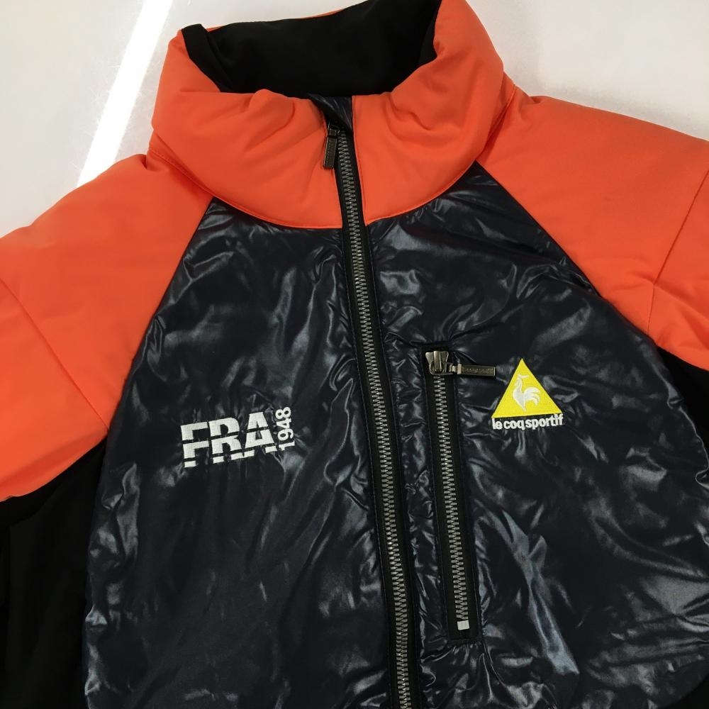 【美品】ルコックゴルフ 異素材切替ダウンジャケット ネイビー×オレンジ ロゴ刺しゅう メンズ M ゴルフウェア le coq sportif