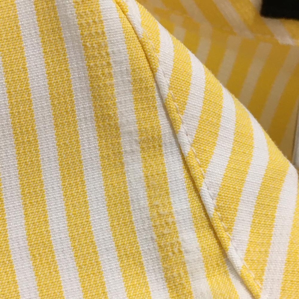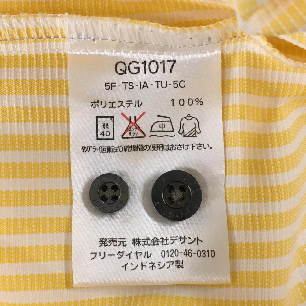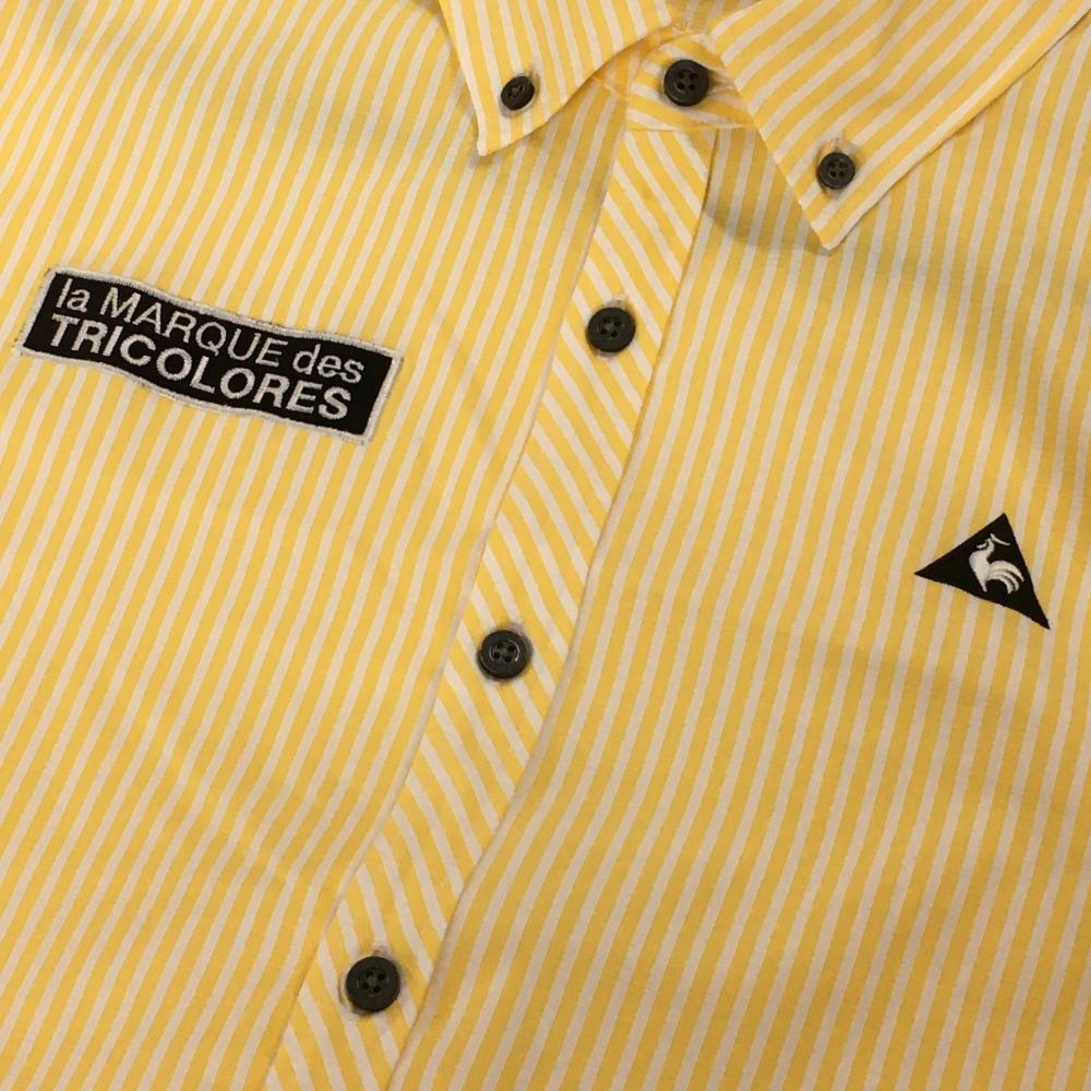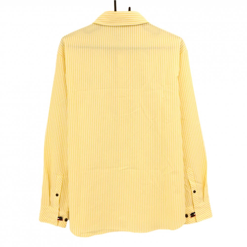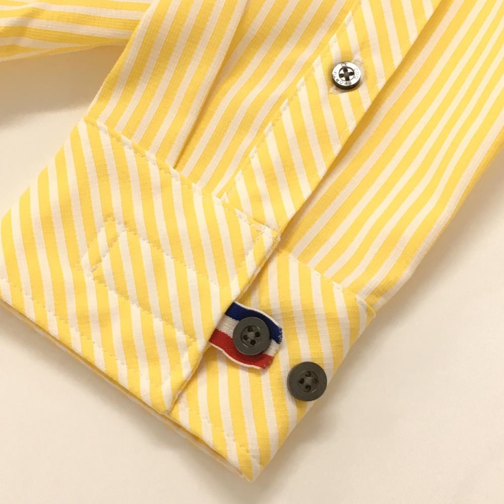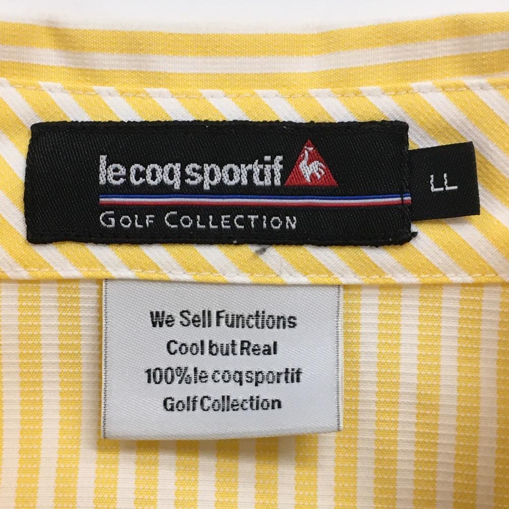 【美品】ルコックゴルフ 長袖シャツ ライトオレンジ×白 ストライプ ロゴ刺しゅう ボタンダウン メンズ LL ゴルフウェア le coq sportif