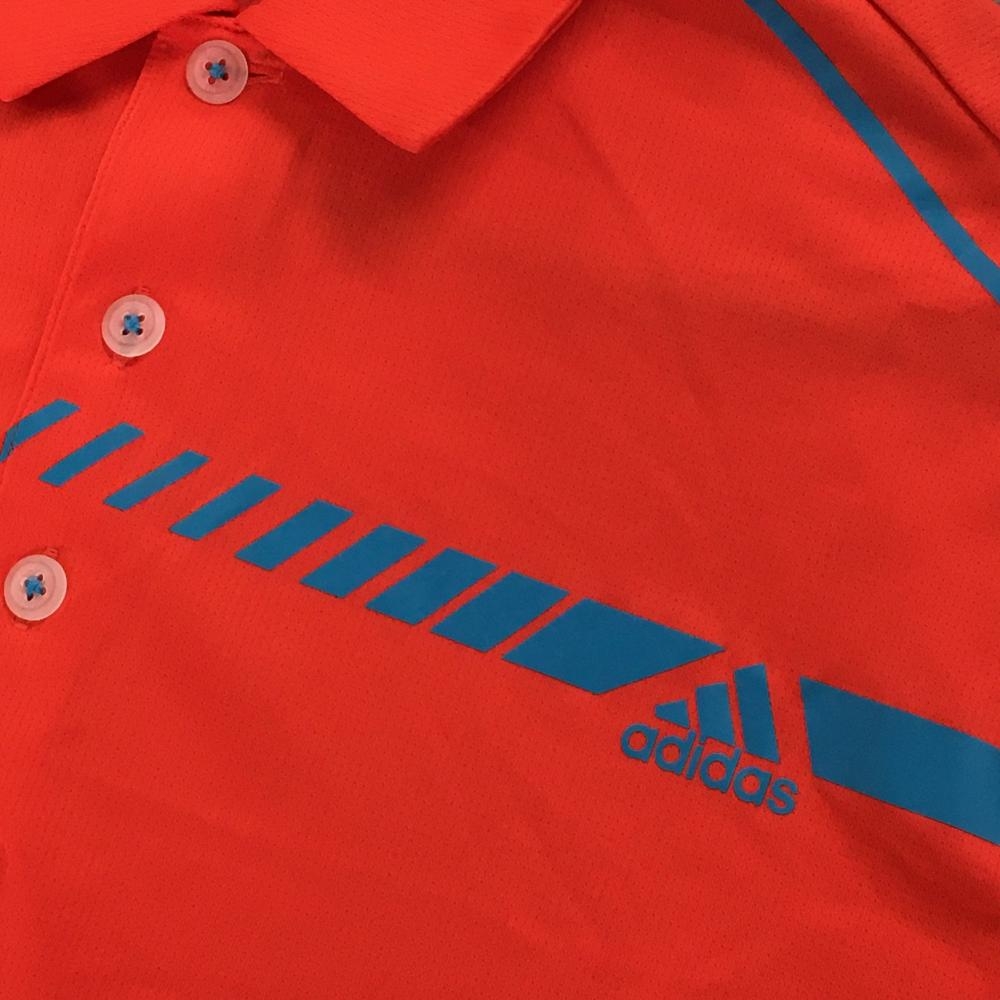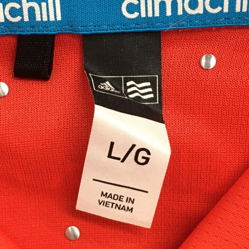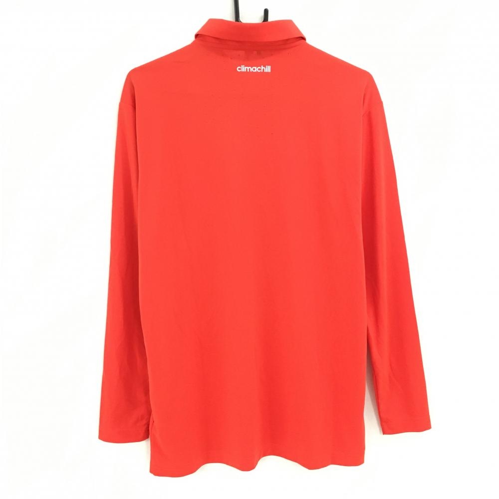 【超美品】アディダス 長袖ポロシャツ オレンジレッド×ブルー ロゴプリント climachill メンズ L/G ゴルフウェア adidas