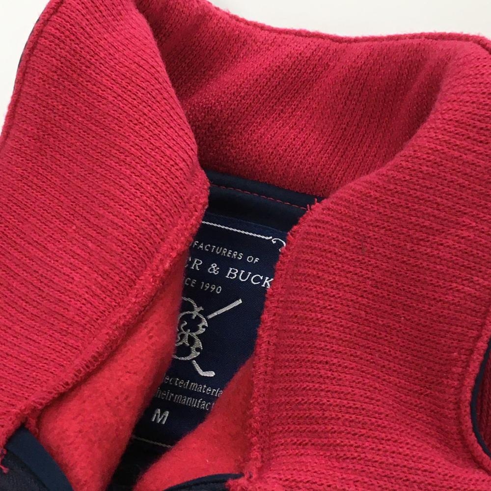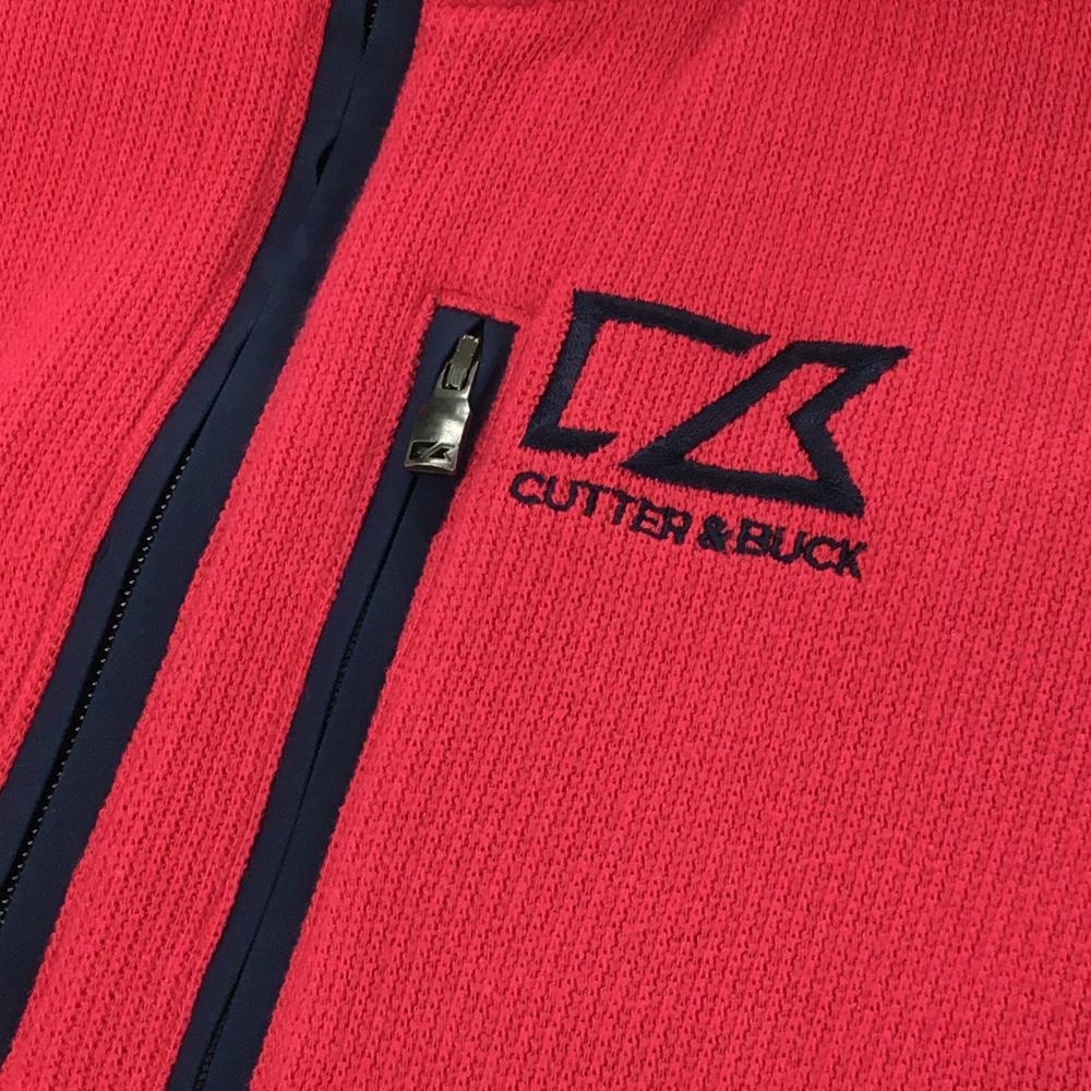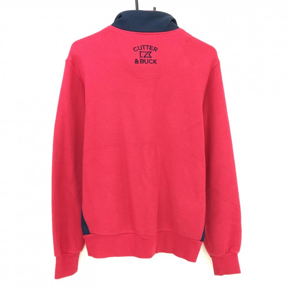 【美品】カッターアンドバック ハイネックセーター ピンク×ネイビー ニット 裏起毛 ハーフジップ メンズ M ゴルフウェア CUTTER&BUCK