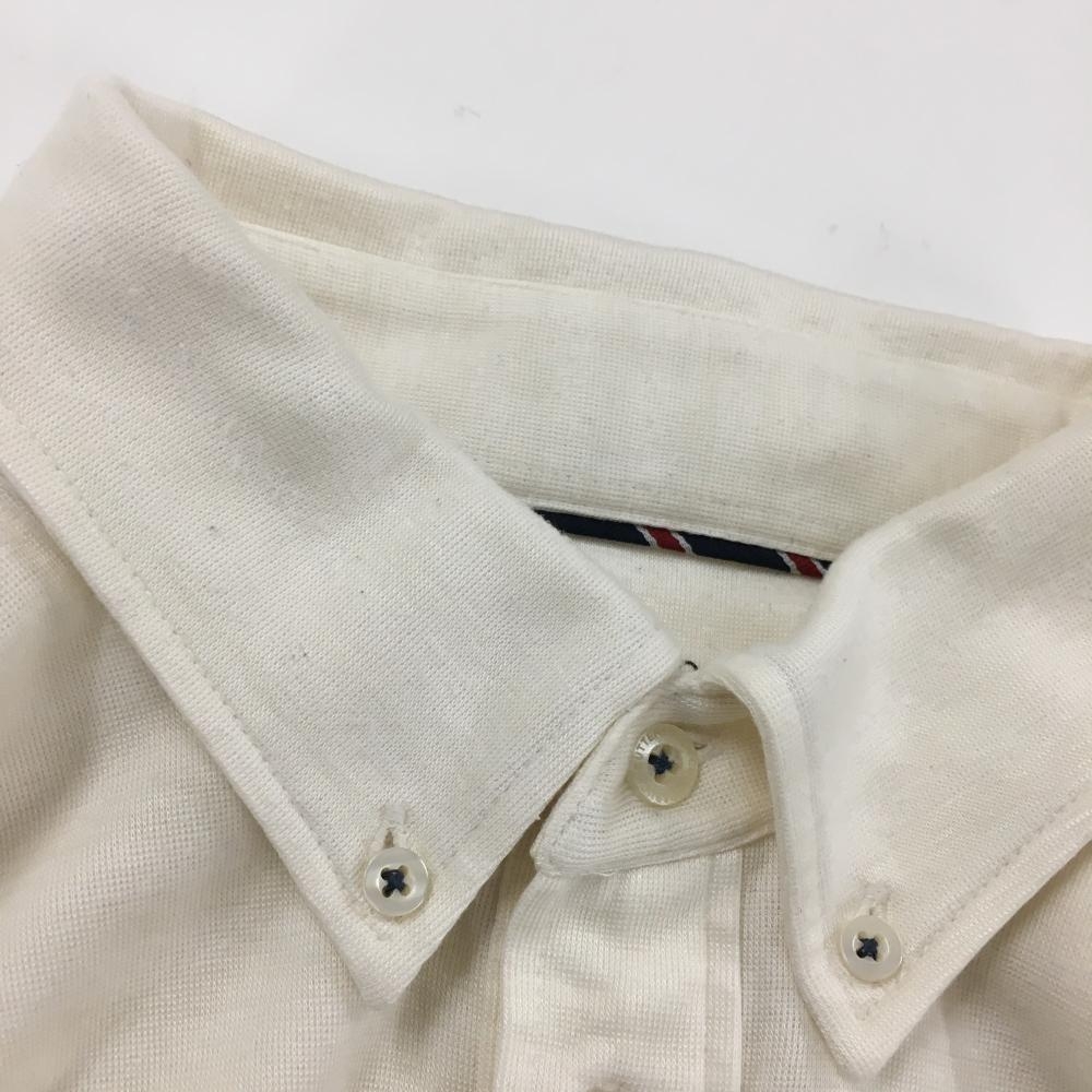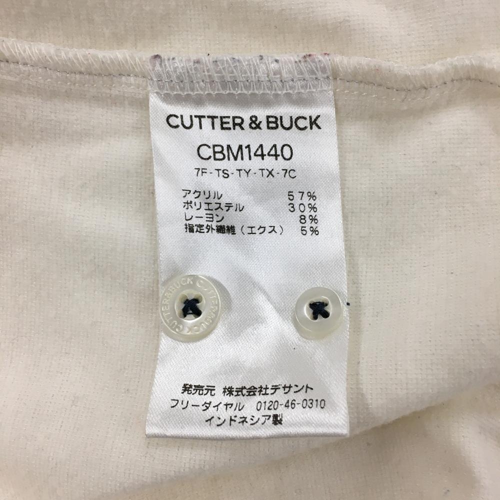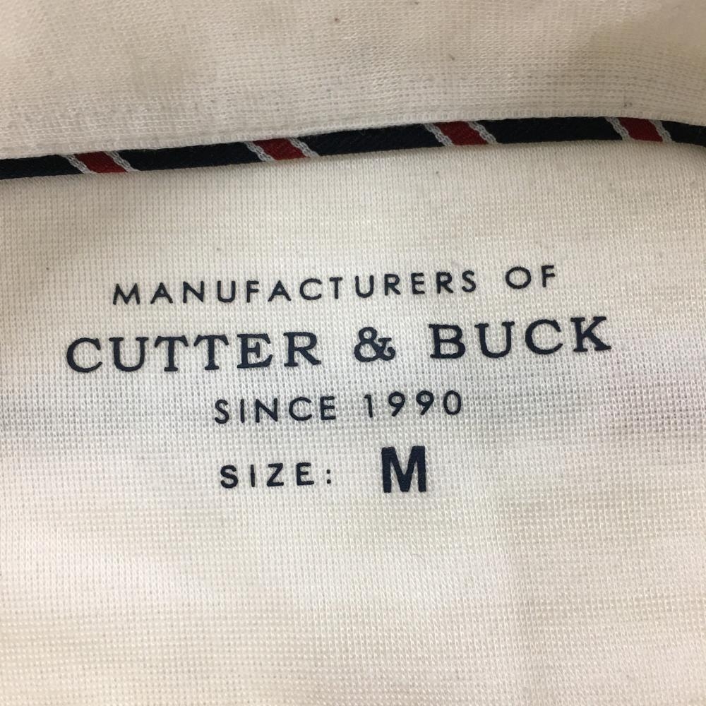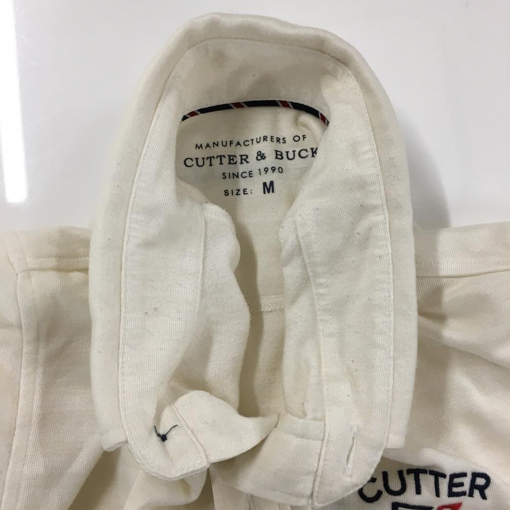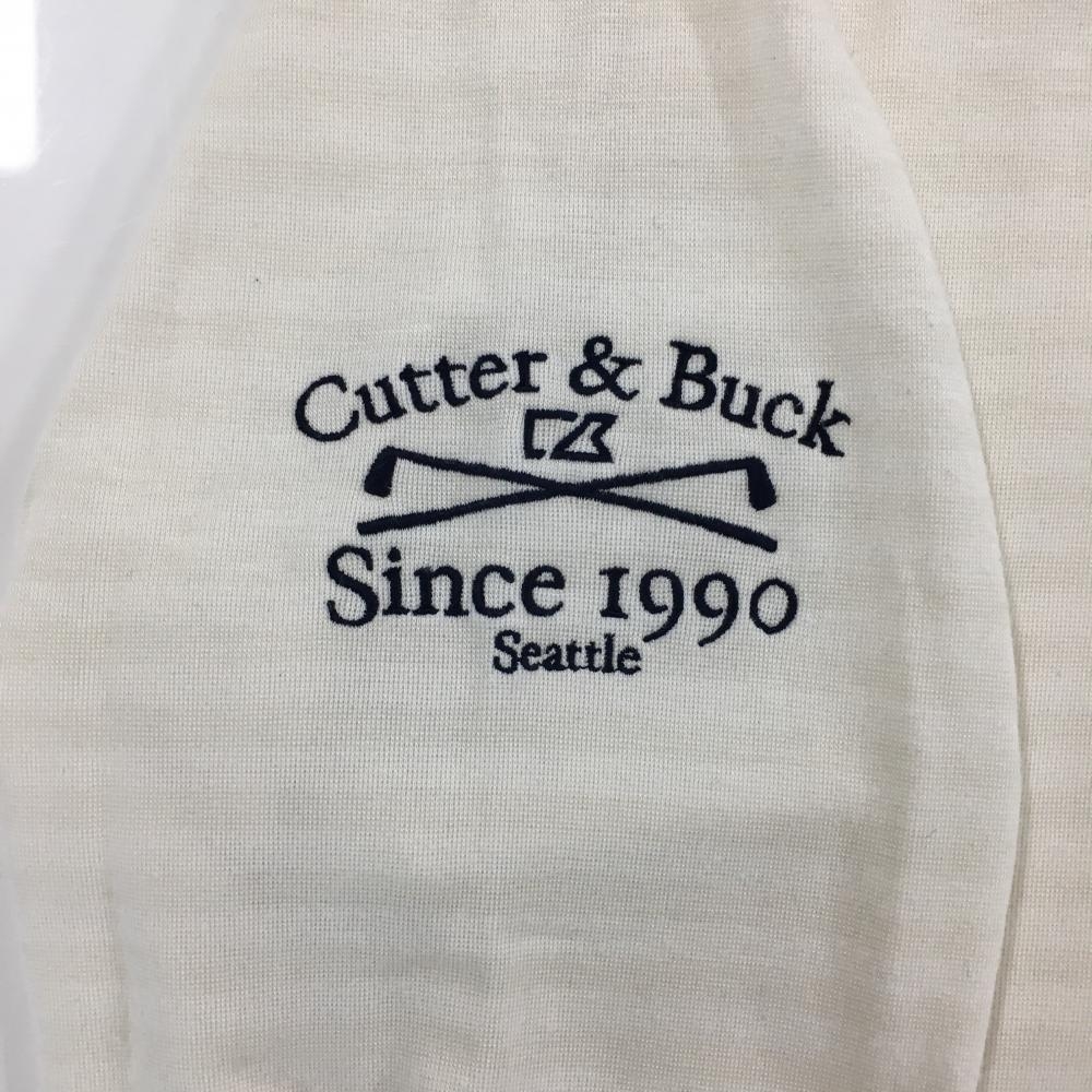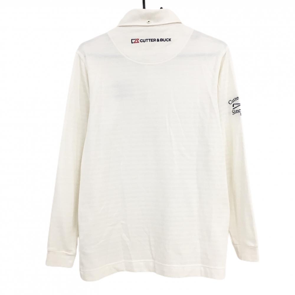 カッターアンドバック 長袖ポロシャツ アイボリー ボーダー織生地 裏微起毛 ボタンダウン メンズ M ゴルフウェア CUTTER&BUCK