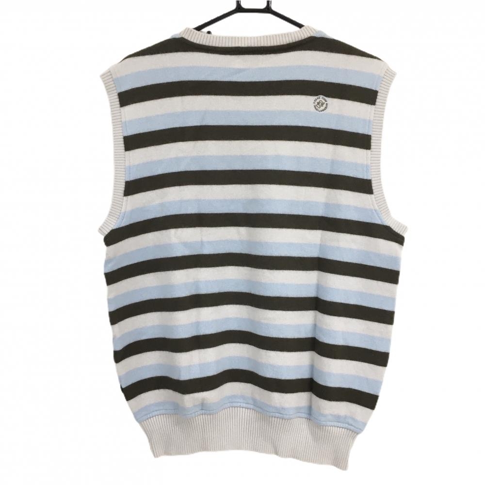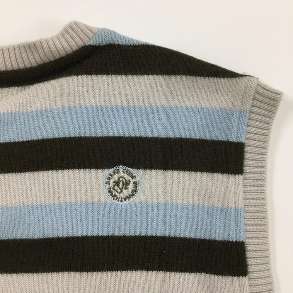 【超美品】ゾーイ ニットベスト ライトグレー×ライトブルー ボーダー ロゴ刺しゅう メンズ サイズ表記無し ゴルフウェア ZOY