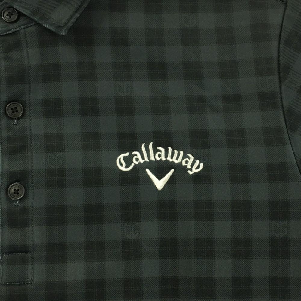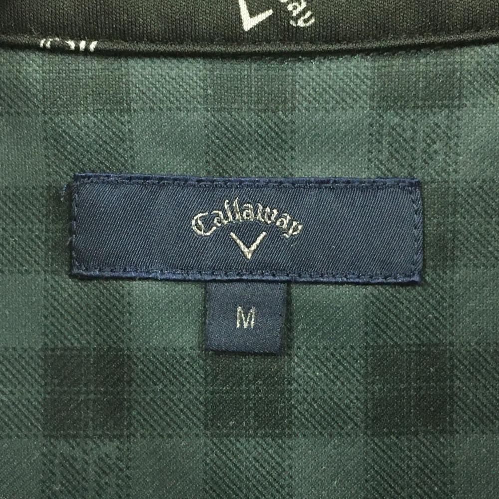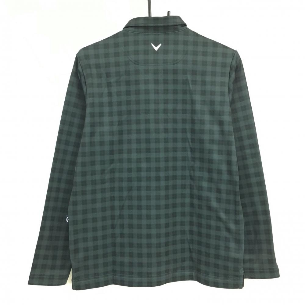 【美品】キャロウェイ 長袖ポロシャツ ダークグリーン チェック ロゴ刺しゅう 裏起毛 メンズ M ゴルフウェア Callaway
