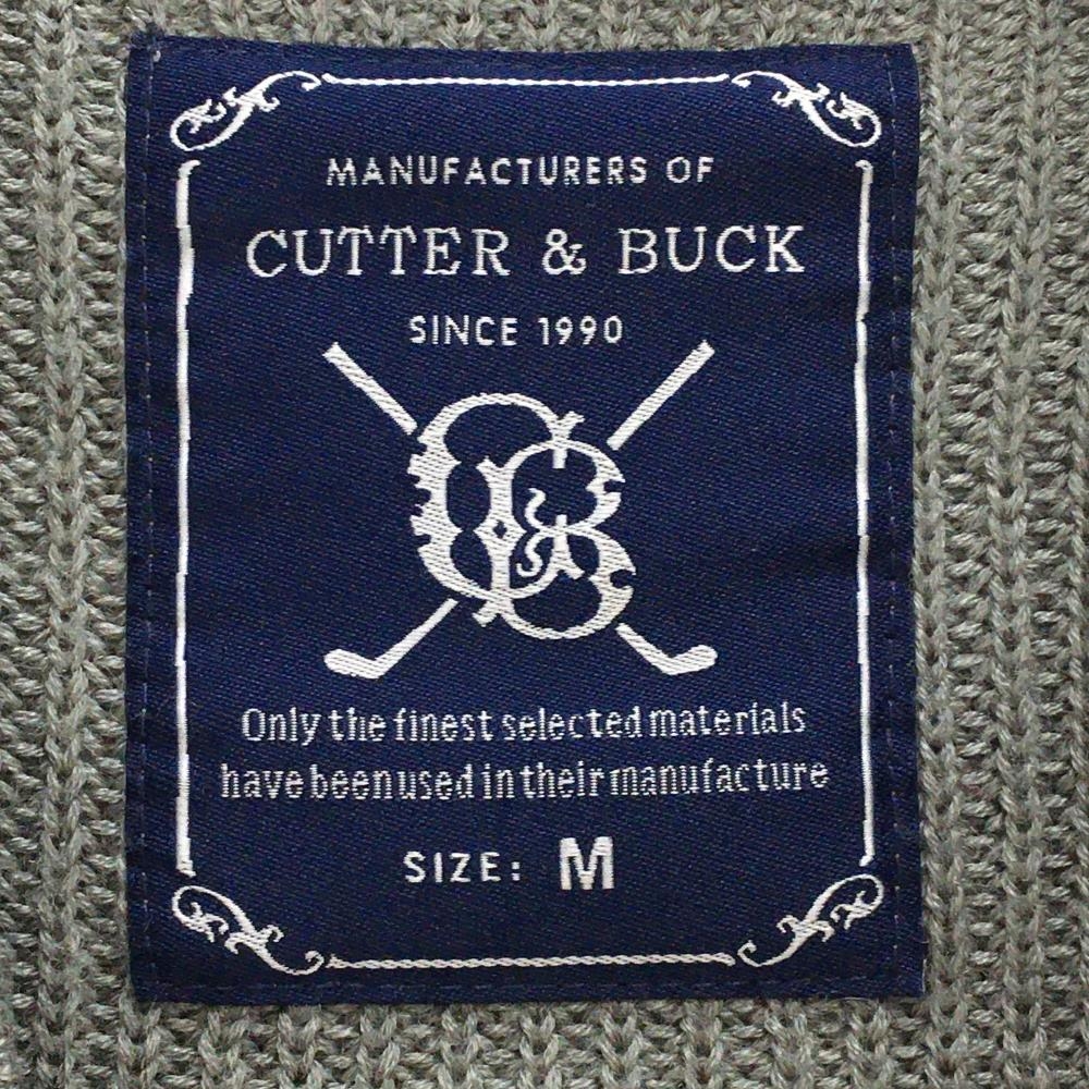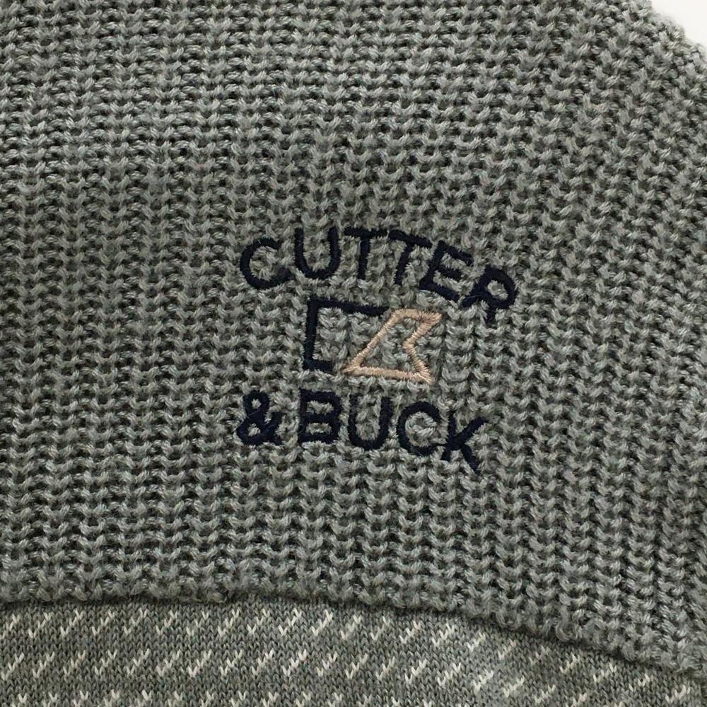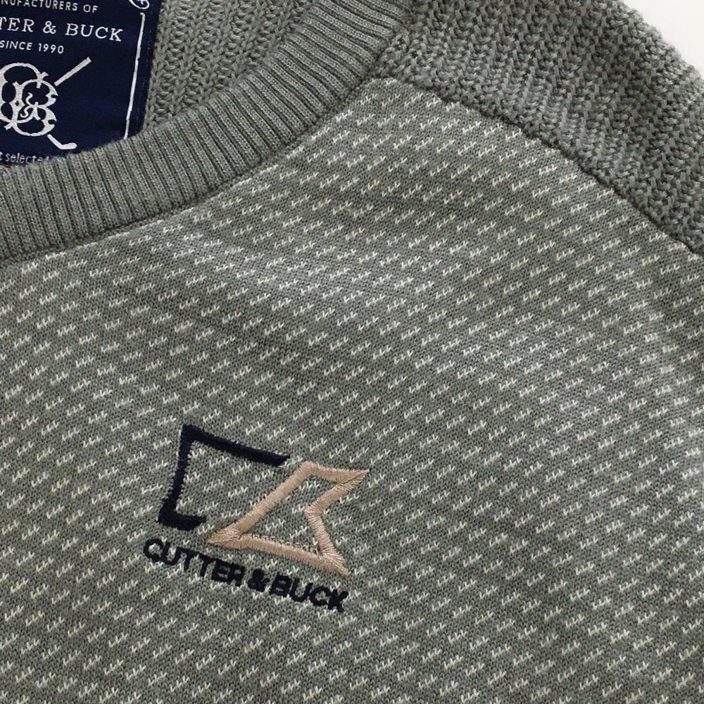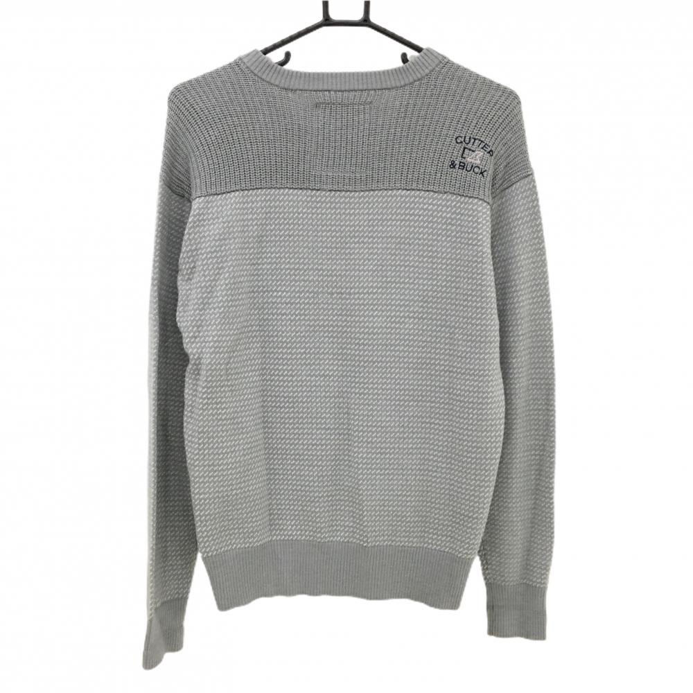 【美品】カッターアンドバック セーター グレー×白 総柄編み ニット ウール混 Vネック メンズ M ゴルフウェア CUTTER&BUCK