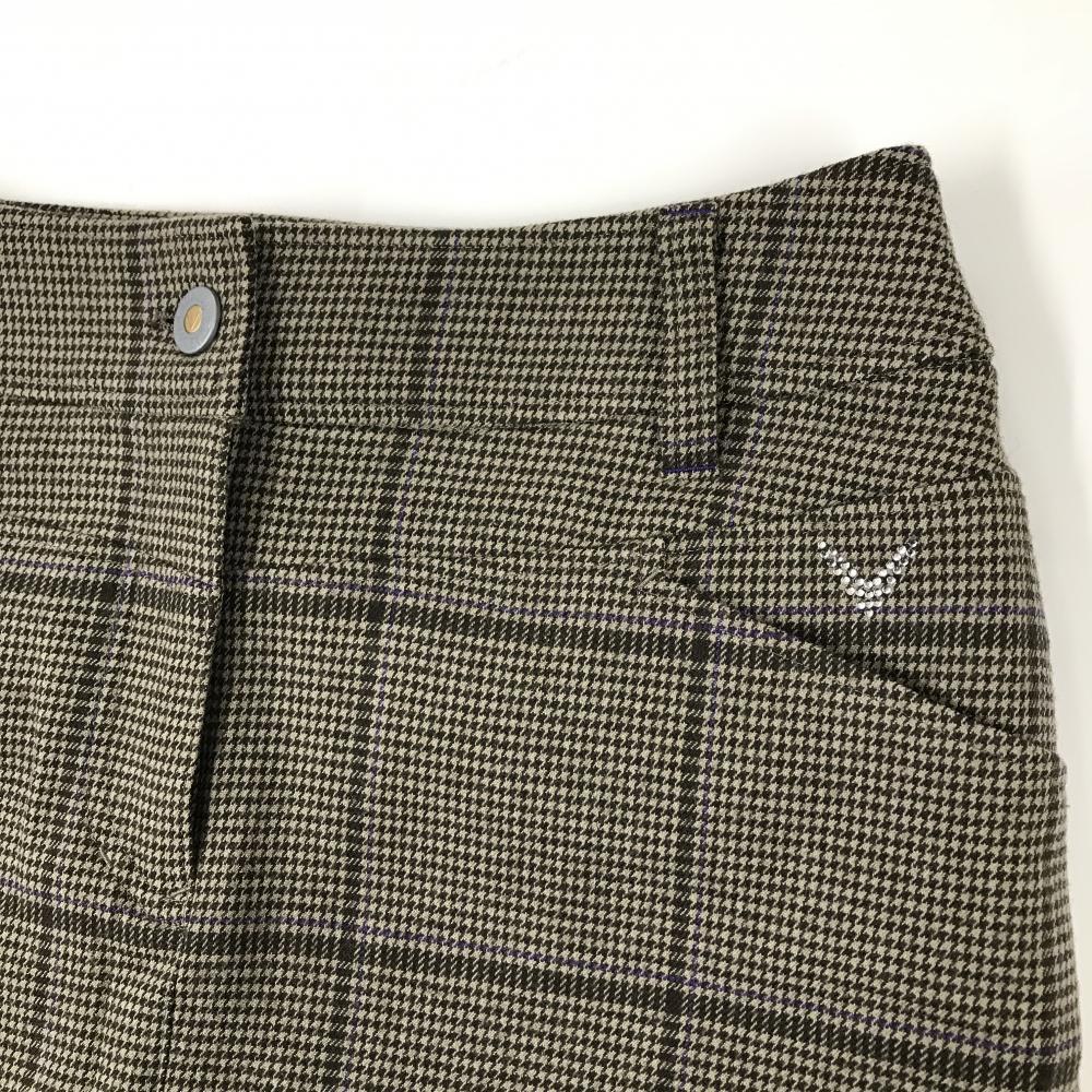 【超美品】キャロウェイ スカート ブラウン×パープル 千鳥格子 内側インナーパンツ ウール混 レディース SS ゴルフウェア Callaway
