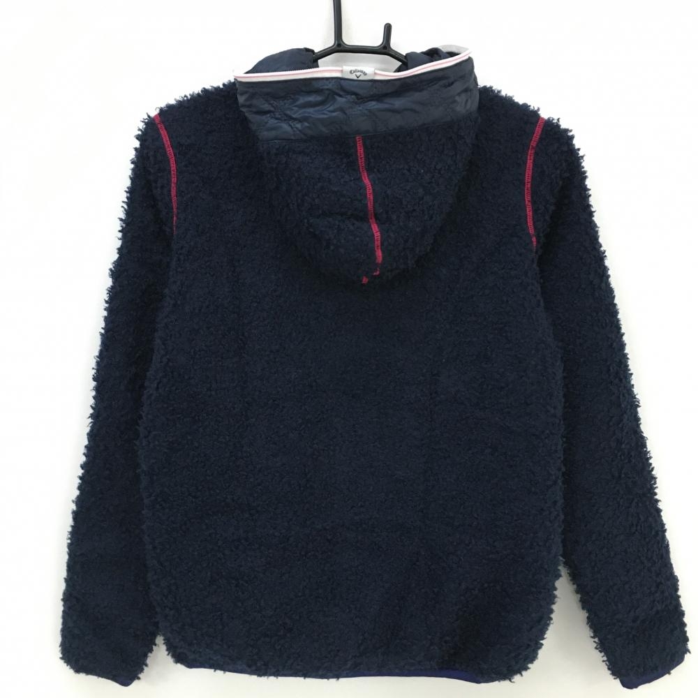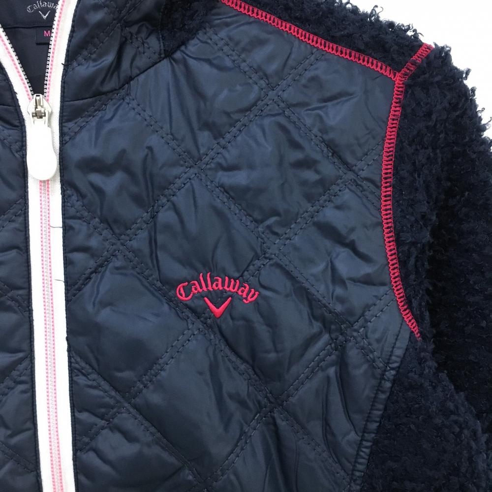 【美品】キャロウェイ 切替ボアジャケット ネイビー 前身頃キルティング ロゴピンク レディース M ゴルフウェア サンプル品 Callaway