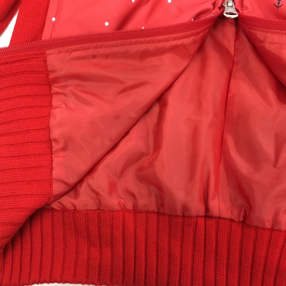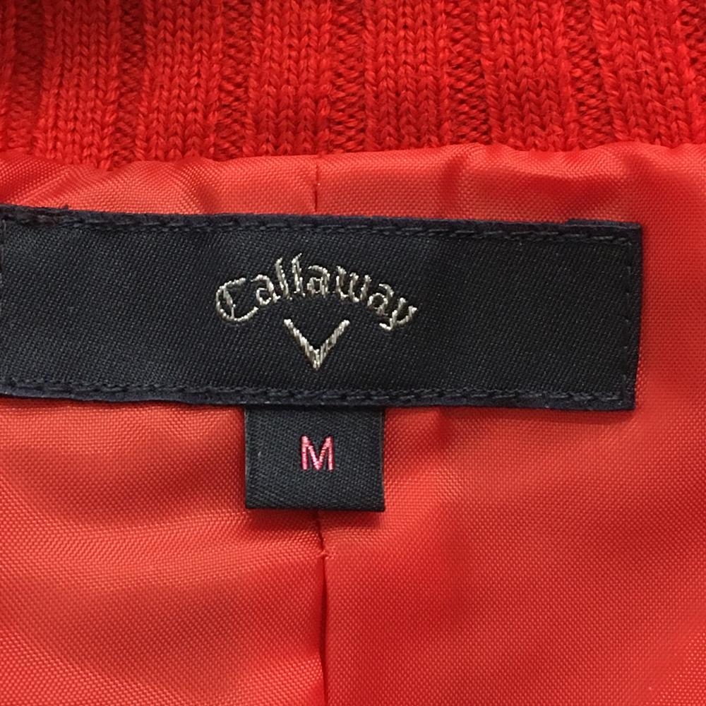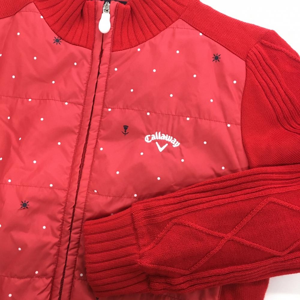 【超美品】キャロウェイ 切替ニットジャケット レッド×白 身頃ドット ロゴ刺しゅう レディース M ゴルフウェア サンプル品 Callaway