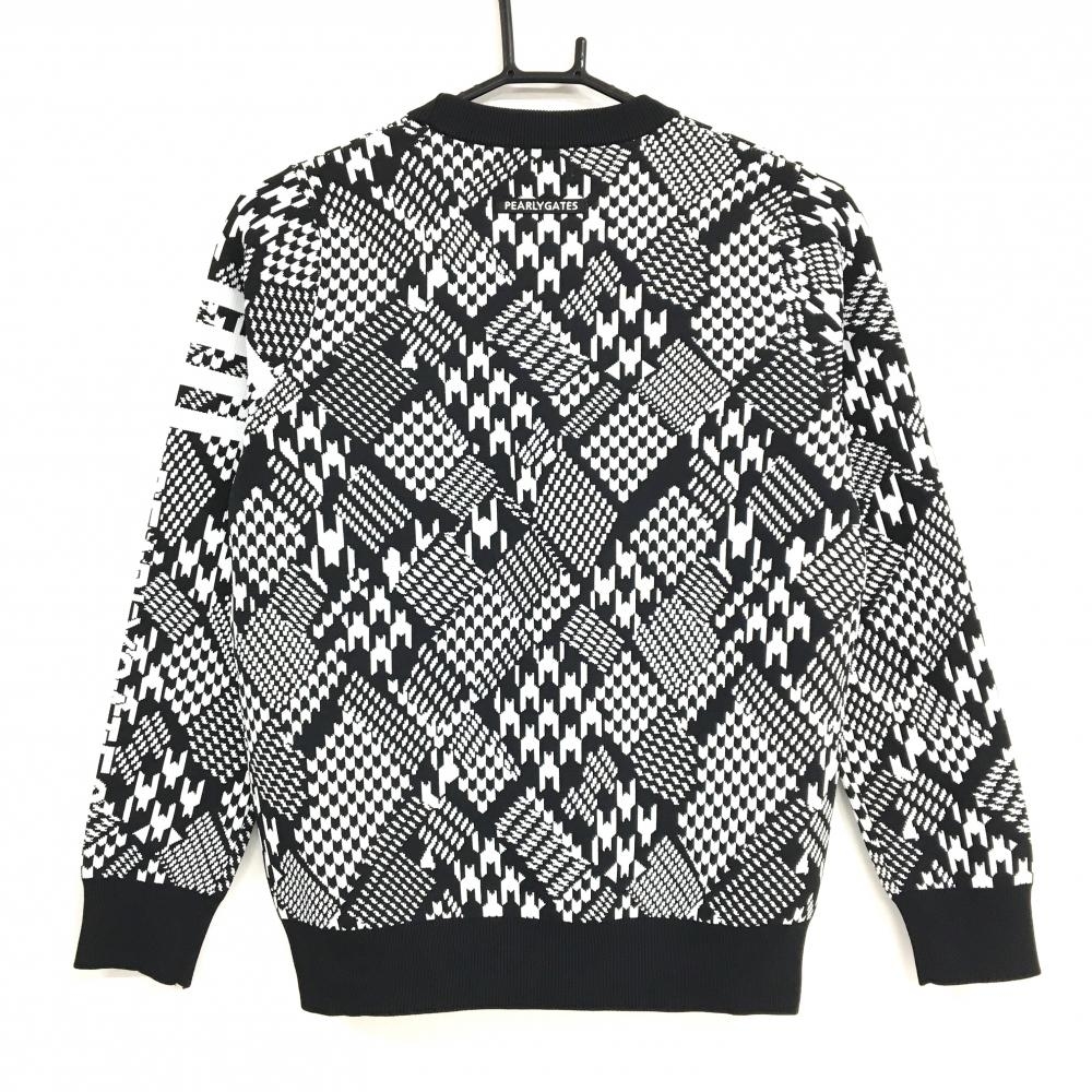 【超美品】パーリーゲイツ セーター 黒×白 千鳥格子 ニット 袖ライン レディース 0(S) ゴルフウェア 2023年モデル PEARLY GATES