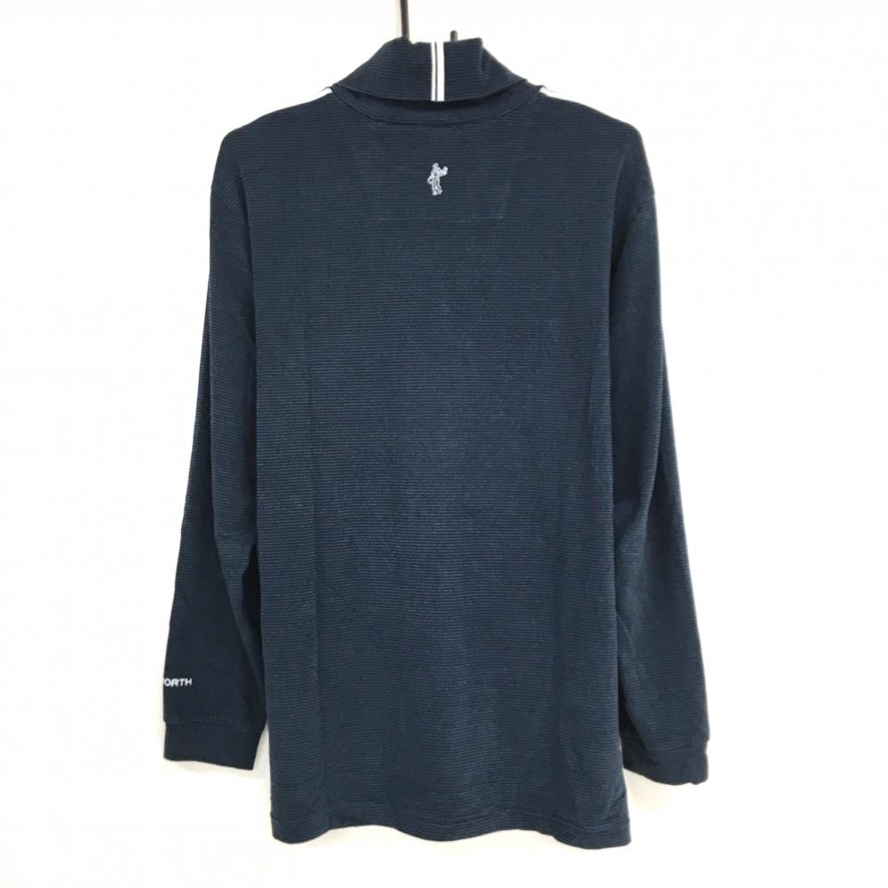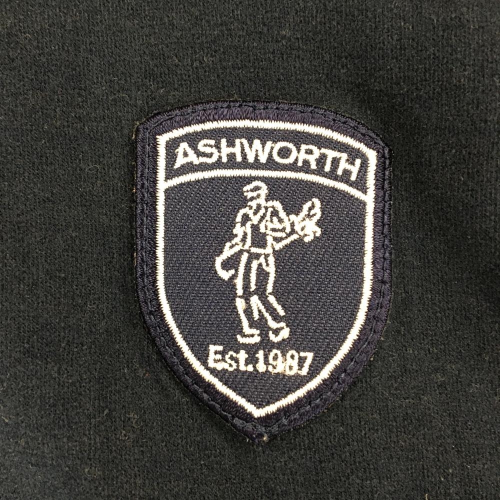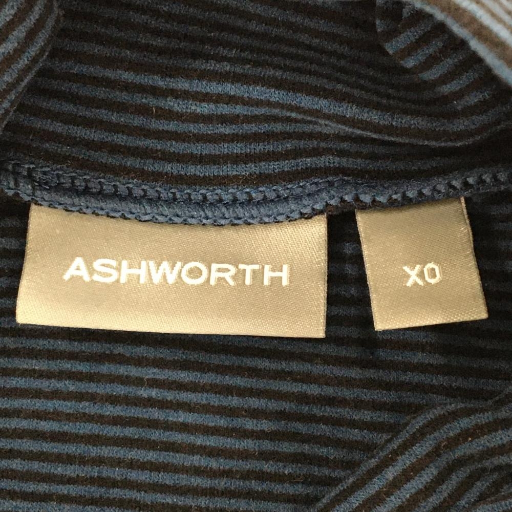 【美品】アシュワース 長袖ハイネックシャツ ネイビー×黒 ネック・袖ボーダー 表微起毛 ロゴワッペン メンズ XO ゴルフウェア ASHWORTH