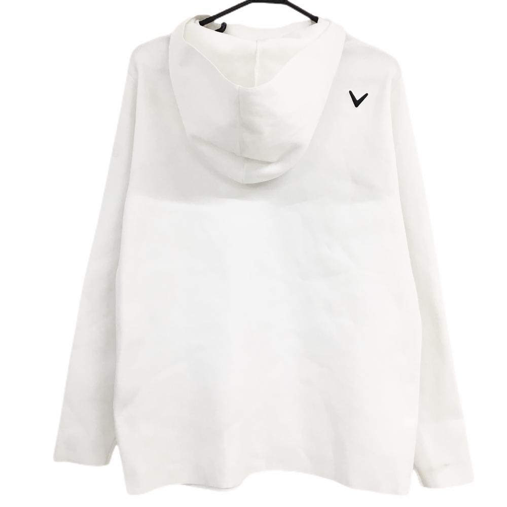 キャロウェイ ニットパーカー 白 ロゴ黒 袖ロゴ フード固定可 メンズ LL ゴルフウェア Callaway