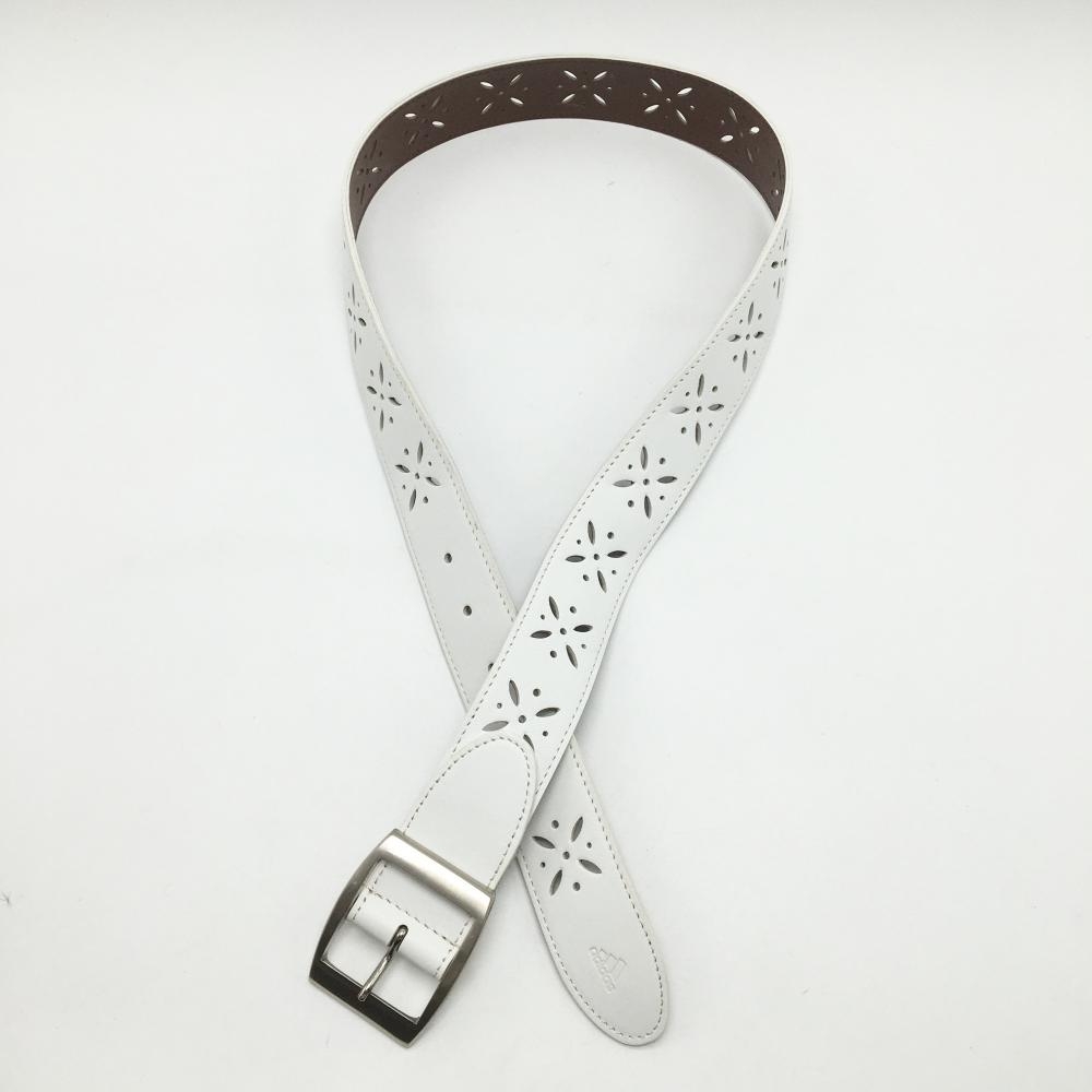 【美品】アディダス ベルト 白 パンチング ロゴ型押し レディース ゴルフウェア adidas