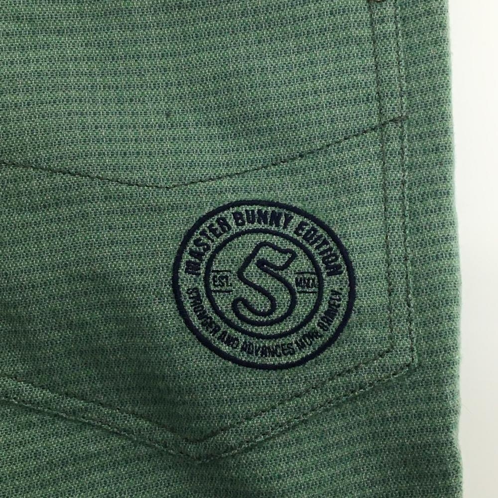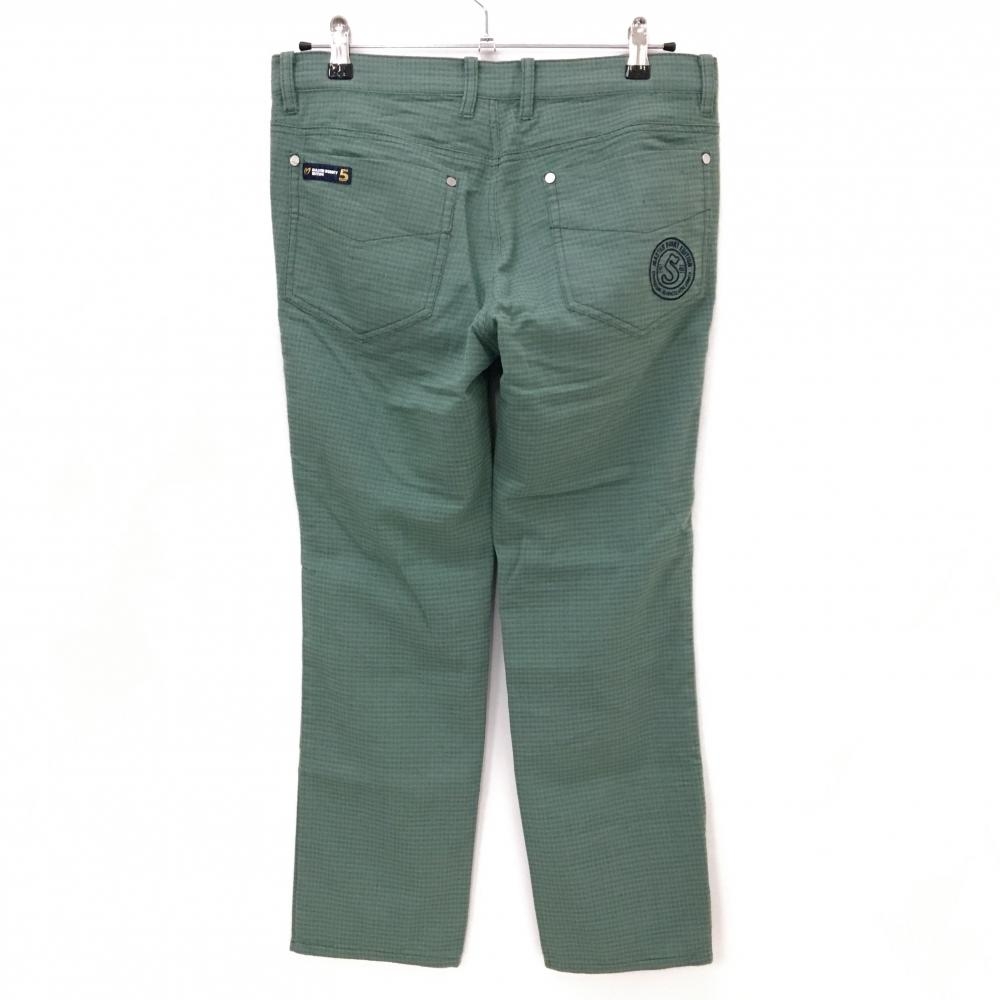 【超美品】マスターバニー パンツ グリーン×ネイビー 地模様 ウール混 薄手 メンズ 4(M) ゴルフウェア MASTER BUNNY EDITION