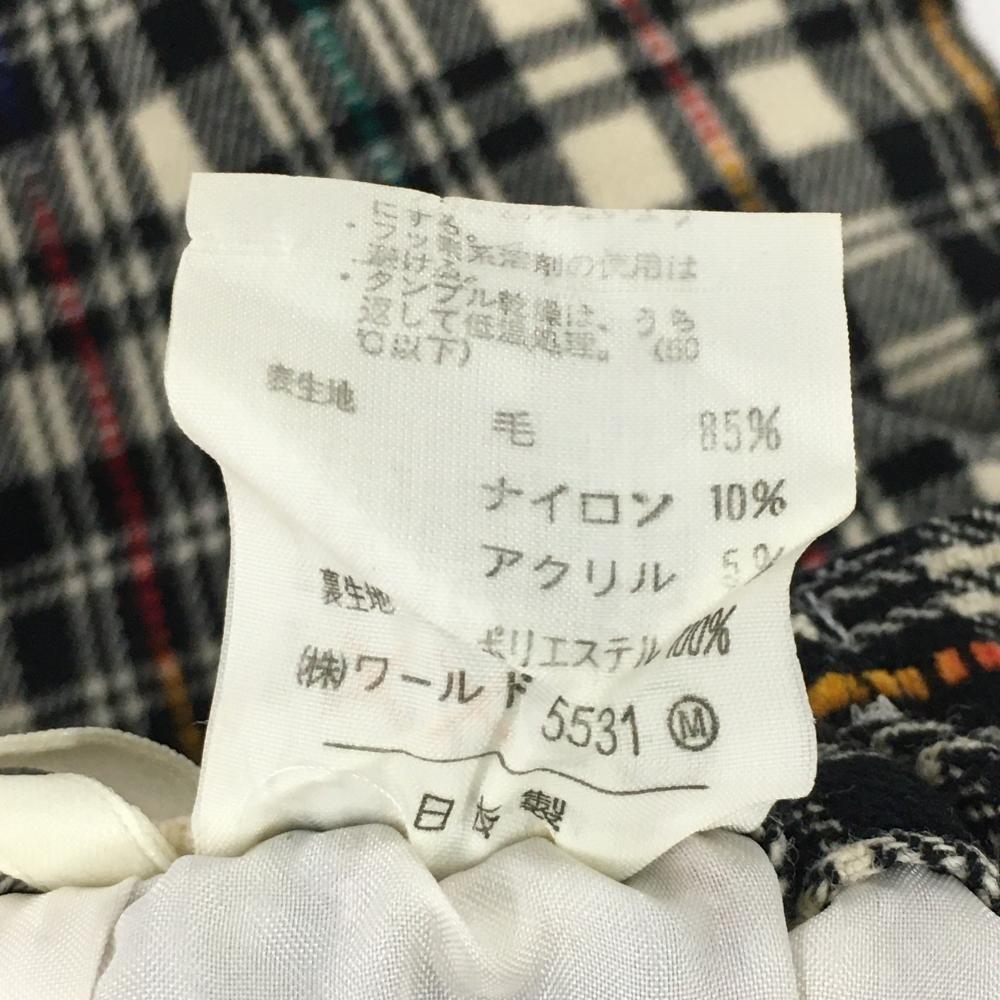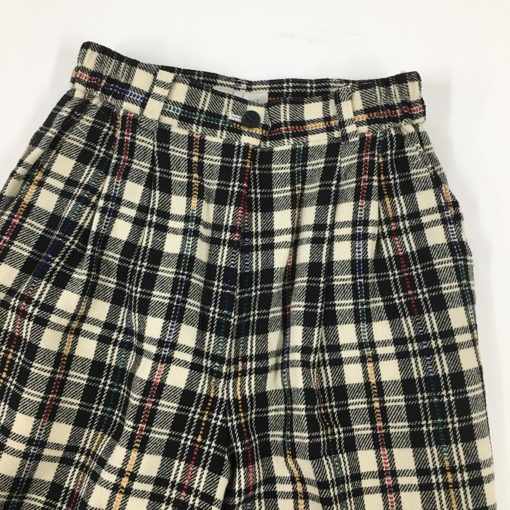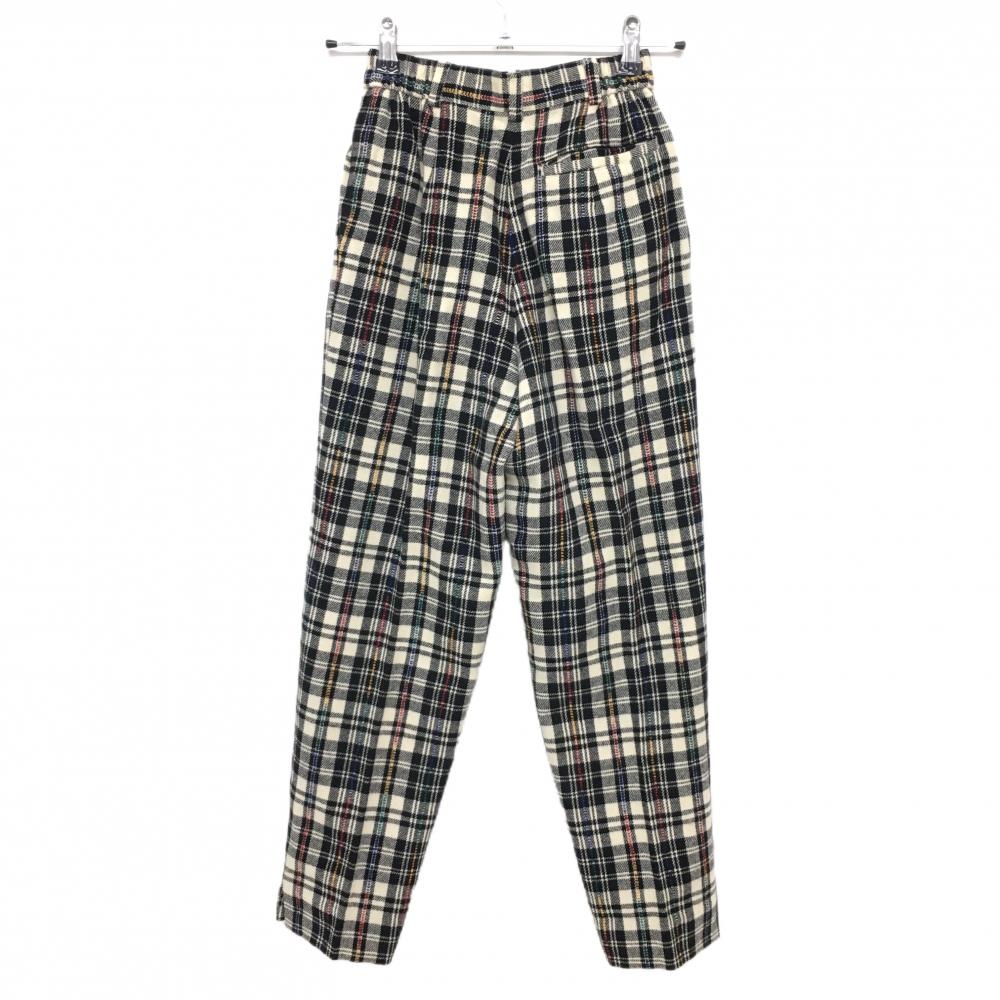 【超美品】アダバット パンツ ベージュ×黒 チェック ウール混 裏地付 レディース 0(S) ゴルフウェア adabat