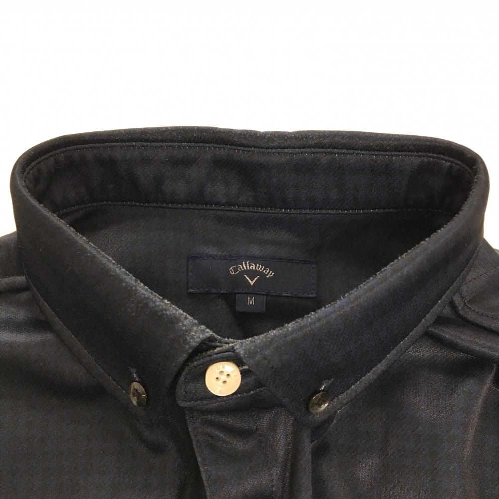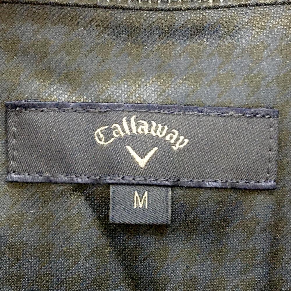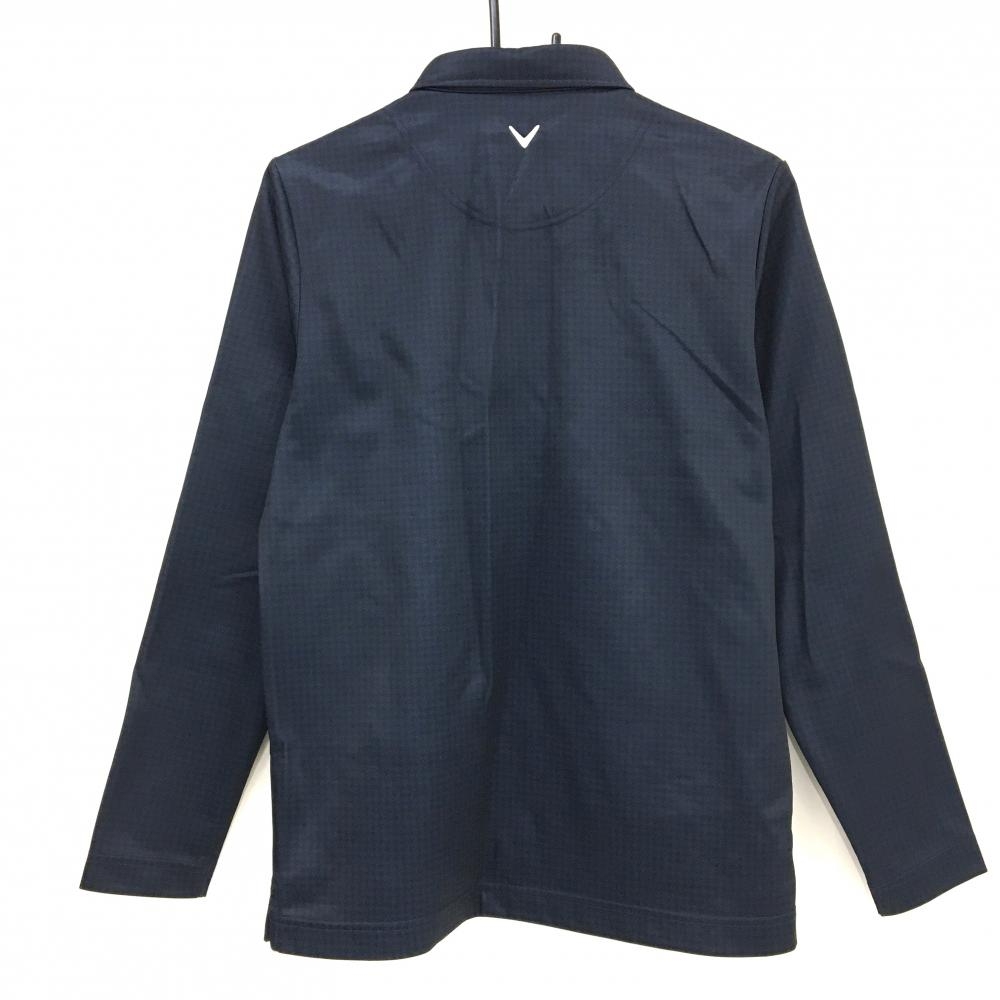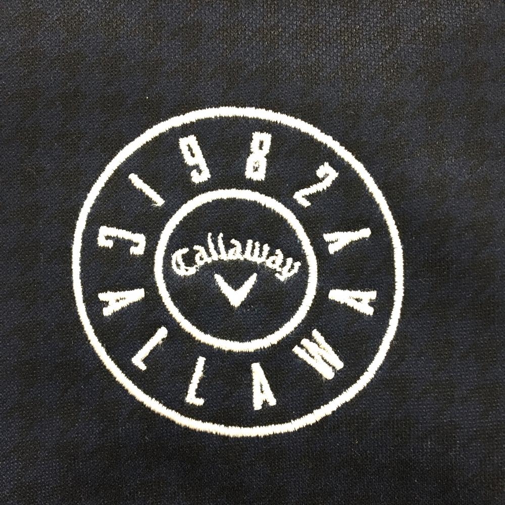 キャロウェイ 長袖ポロシャツ ネイビー×黒 千鳥柄 ロゴ白 裏微起毛 メンズ M ゴルフウェア Callaway