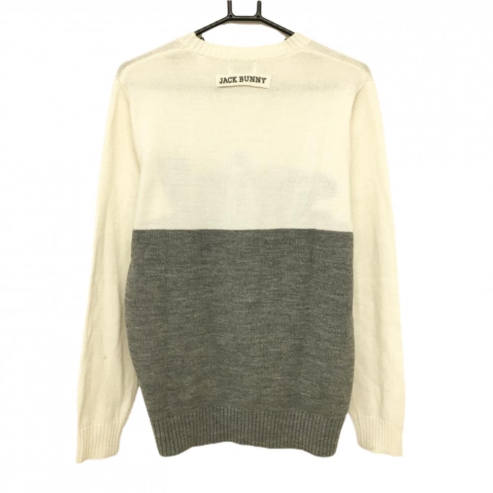 ジャックバニー セーター アイボリー×グレー ニット ウール混 バイカラー メンズ 6(XL) ゴルフウェア Jack Bunny
