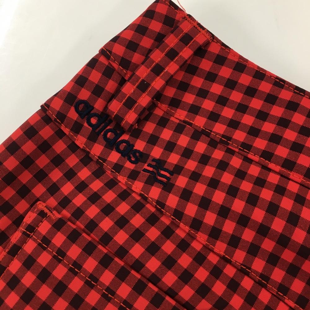 【超美品】アディダス パンツ レッド×黒 ギンガムチェック 裏起毛 レディース L/G ゴルフウェア adidas