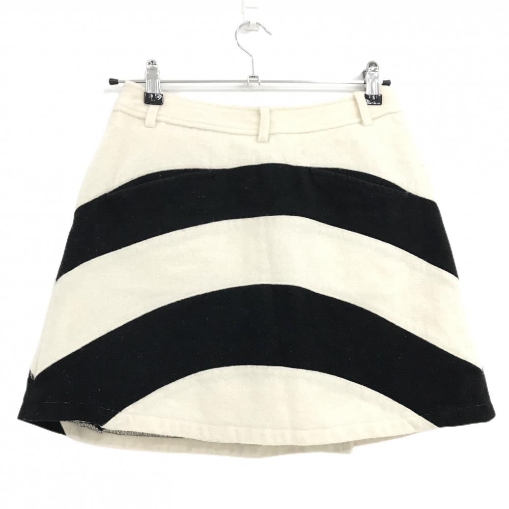 キャロウェイ スカート アイボリー×ネイビー 曲線ボーダー ウール混 内側インナーパンツ レディース M ゴルフウェア Callaway