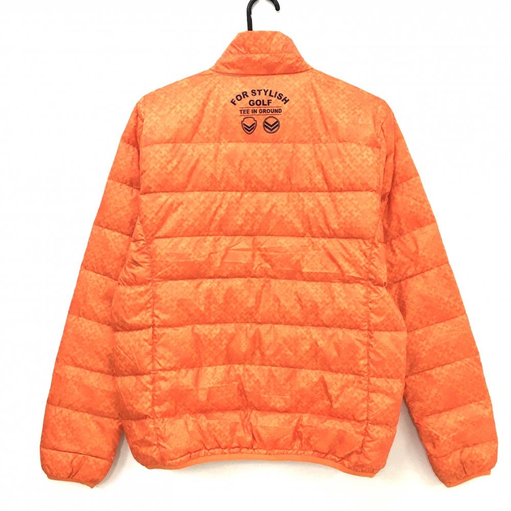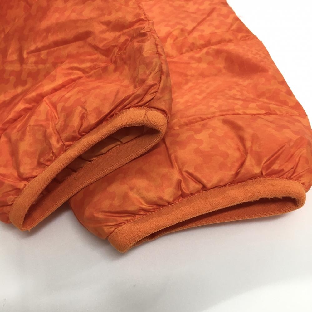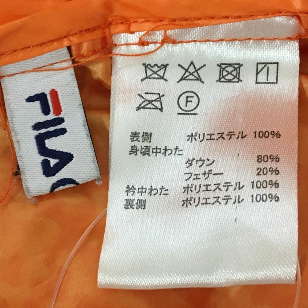 【美品】フィラゴルフ ダウンジャケット オレンジ 総柄 ロゴネイビー レディース M ゴルフウェア FILA GOLF