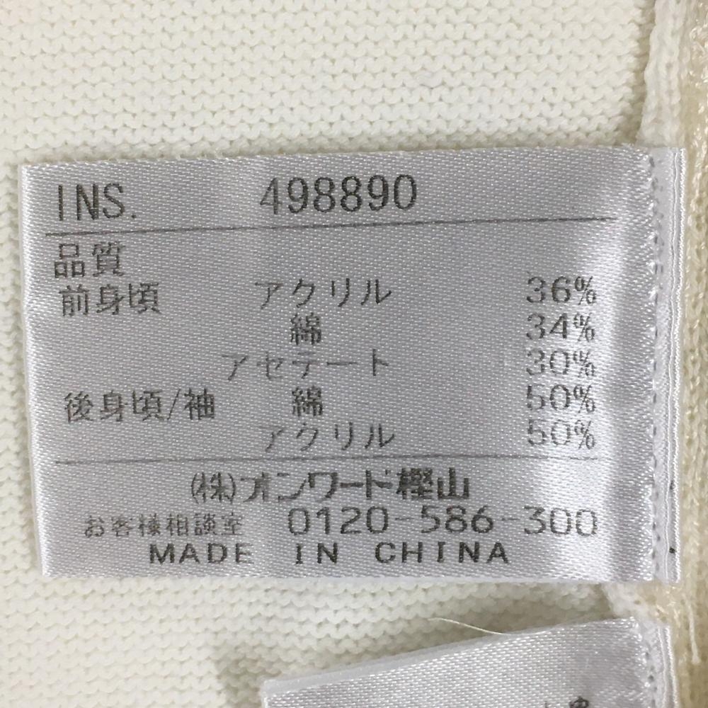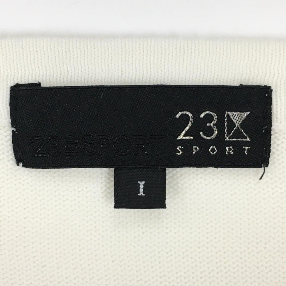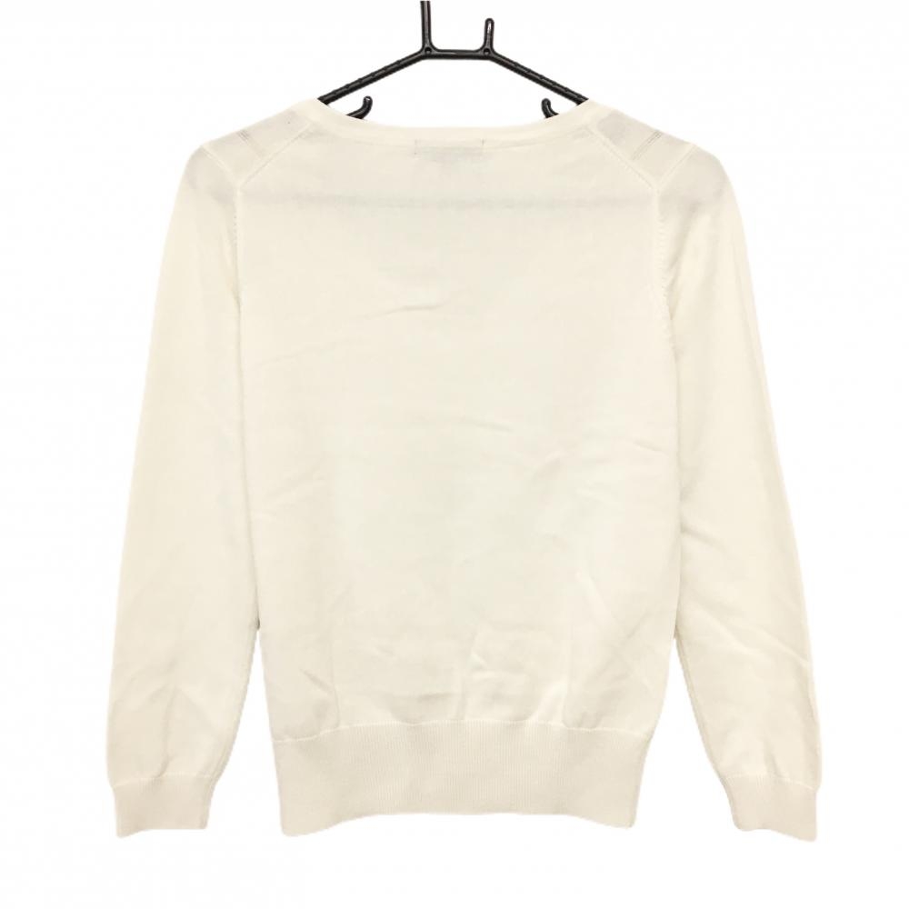 【美品】23区スポーツ セーター 白 前身頃格子編み ニット Vネック ビーズロゴ レディース I(M) ゴルフウェア 23区