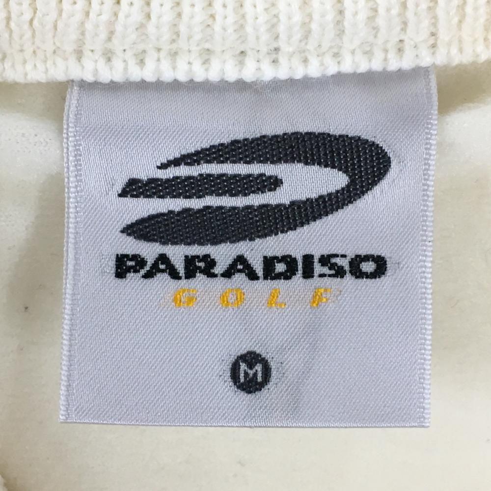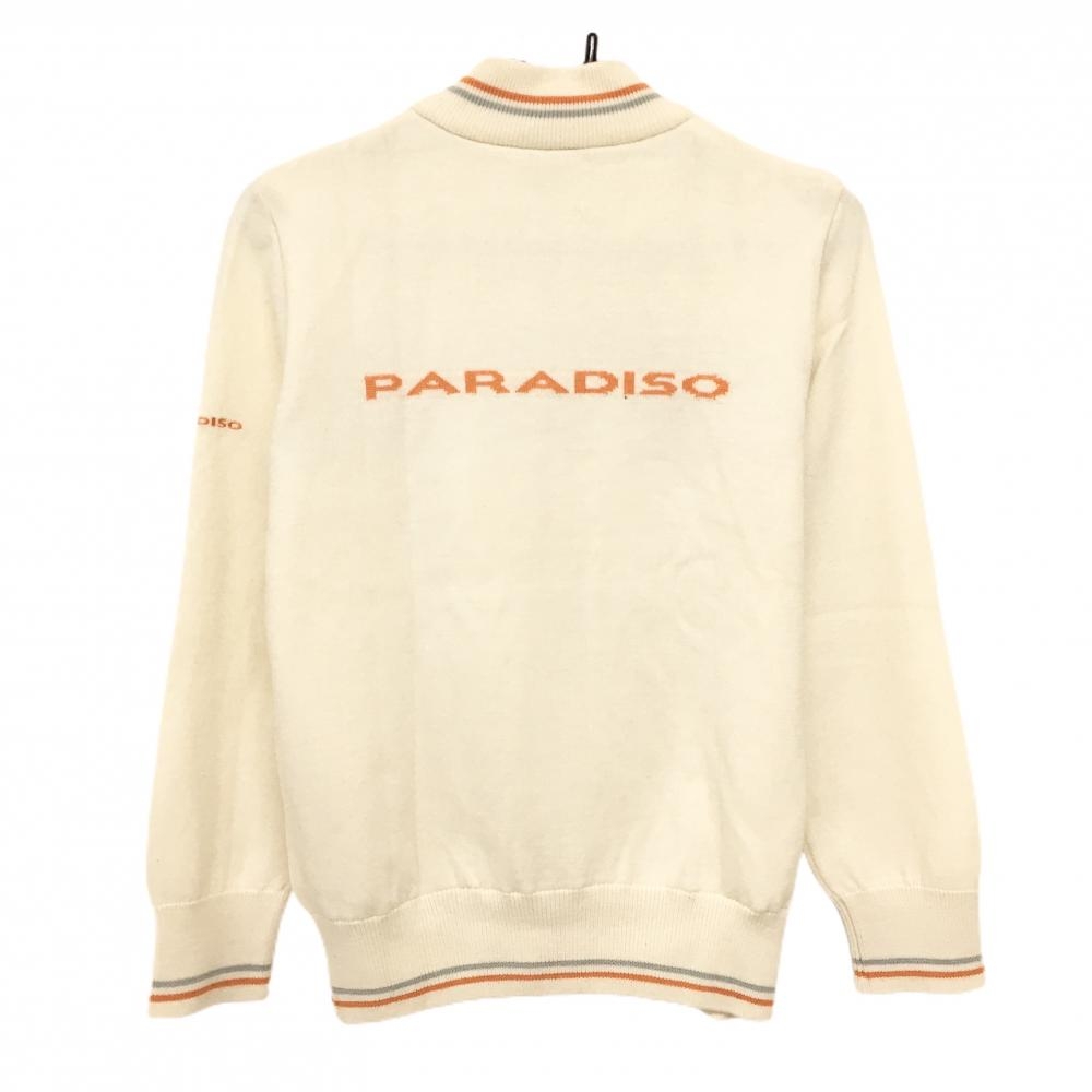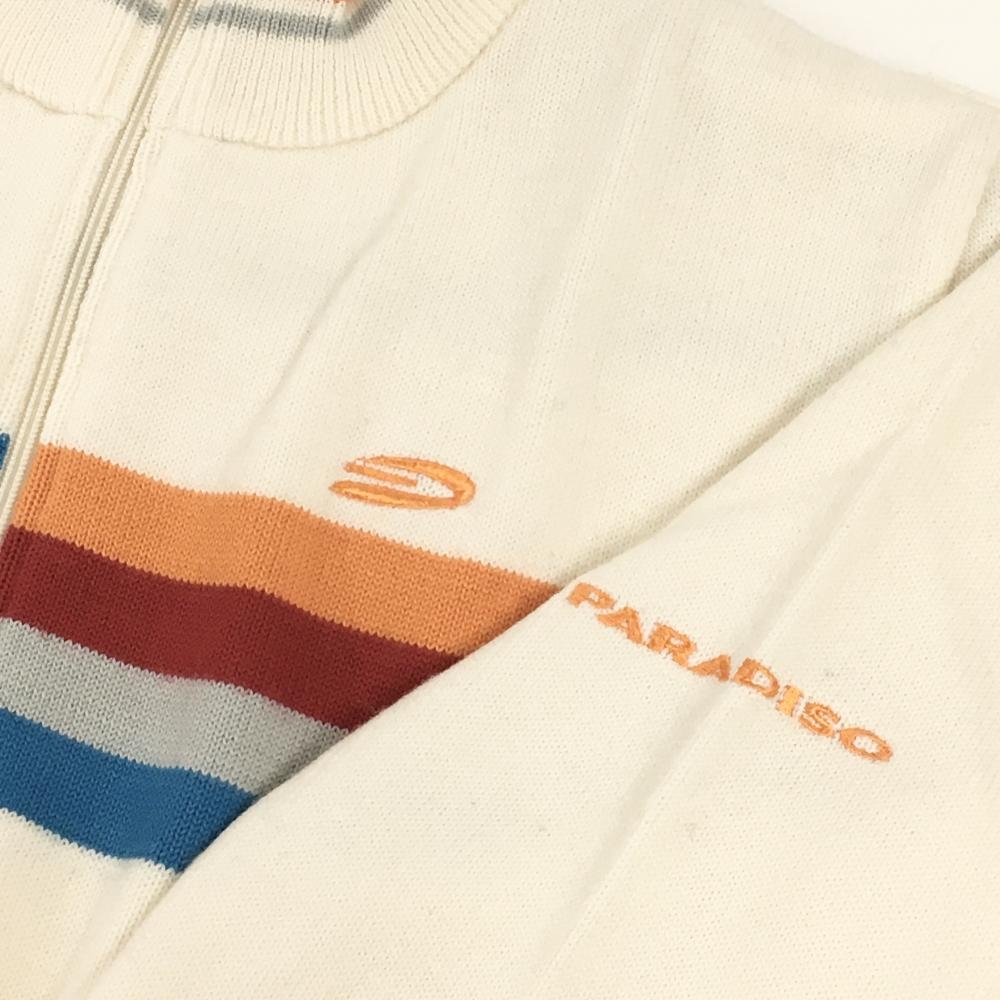 【超美品】パラディーゾ ニットジャケット 白×オレンジ 一部ボーダー ウール混 裏微起毛 レディース M ゴルフウェア Paradiso