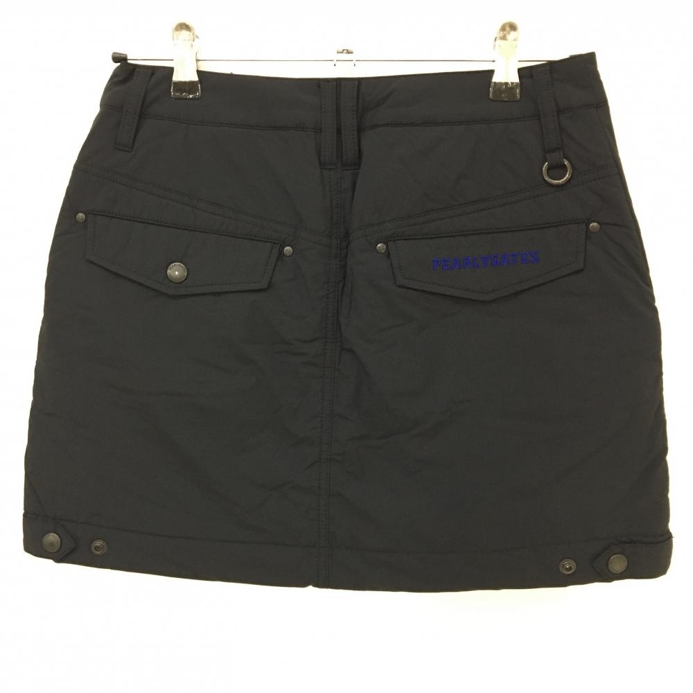 【超美品】パーリーゲイツ 中綿ナイロンスカート 黒 ジップポケット 裾調節可 レディース 0(S) ゴルフウェア PEARLY GATES