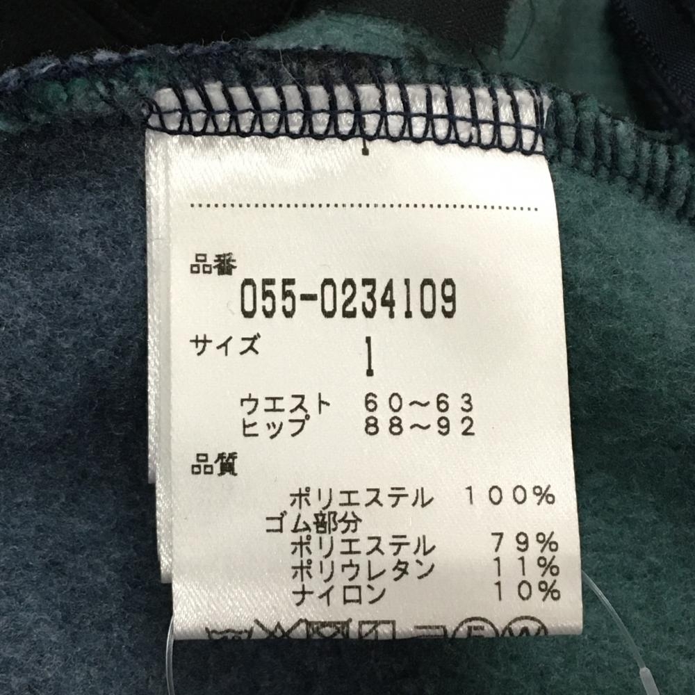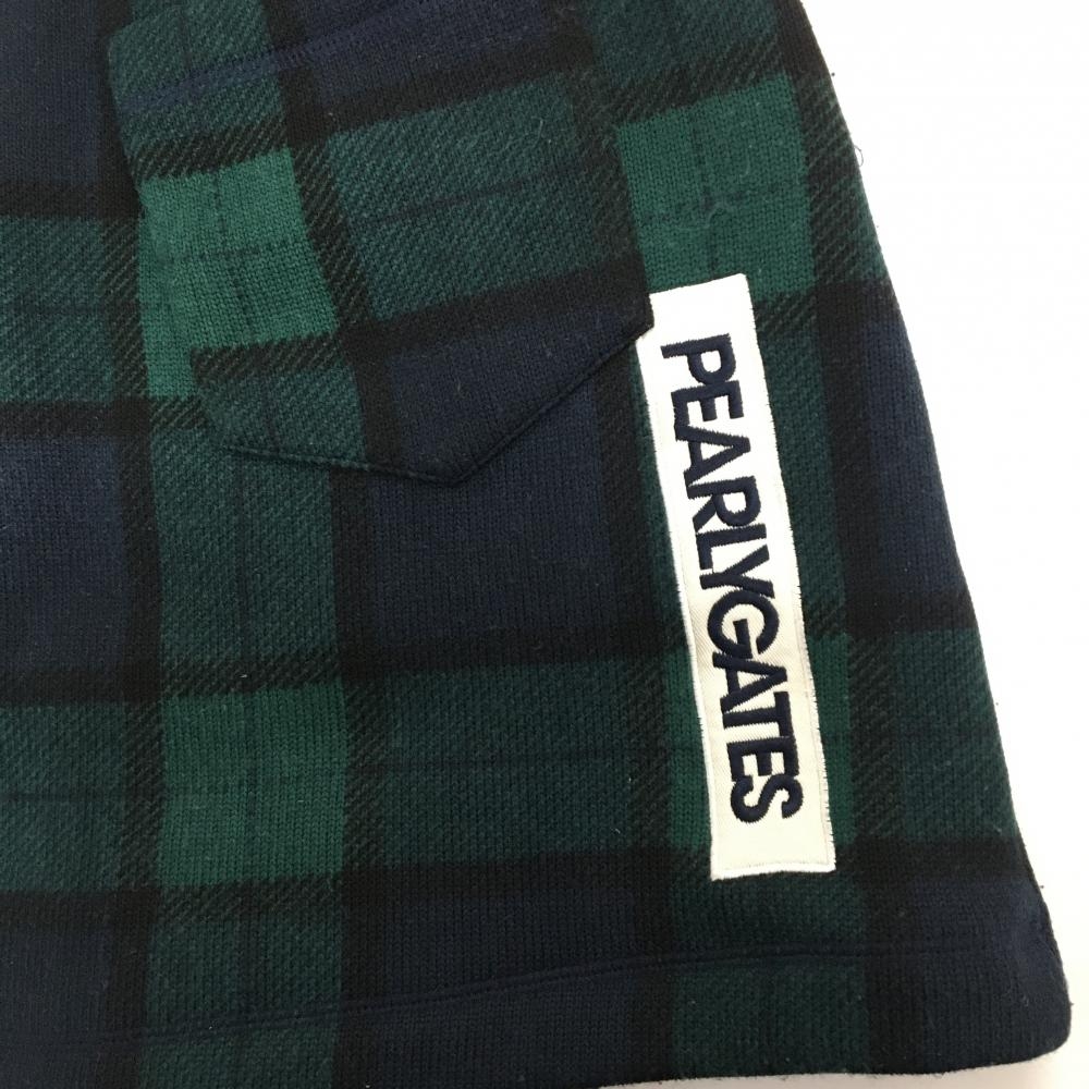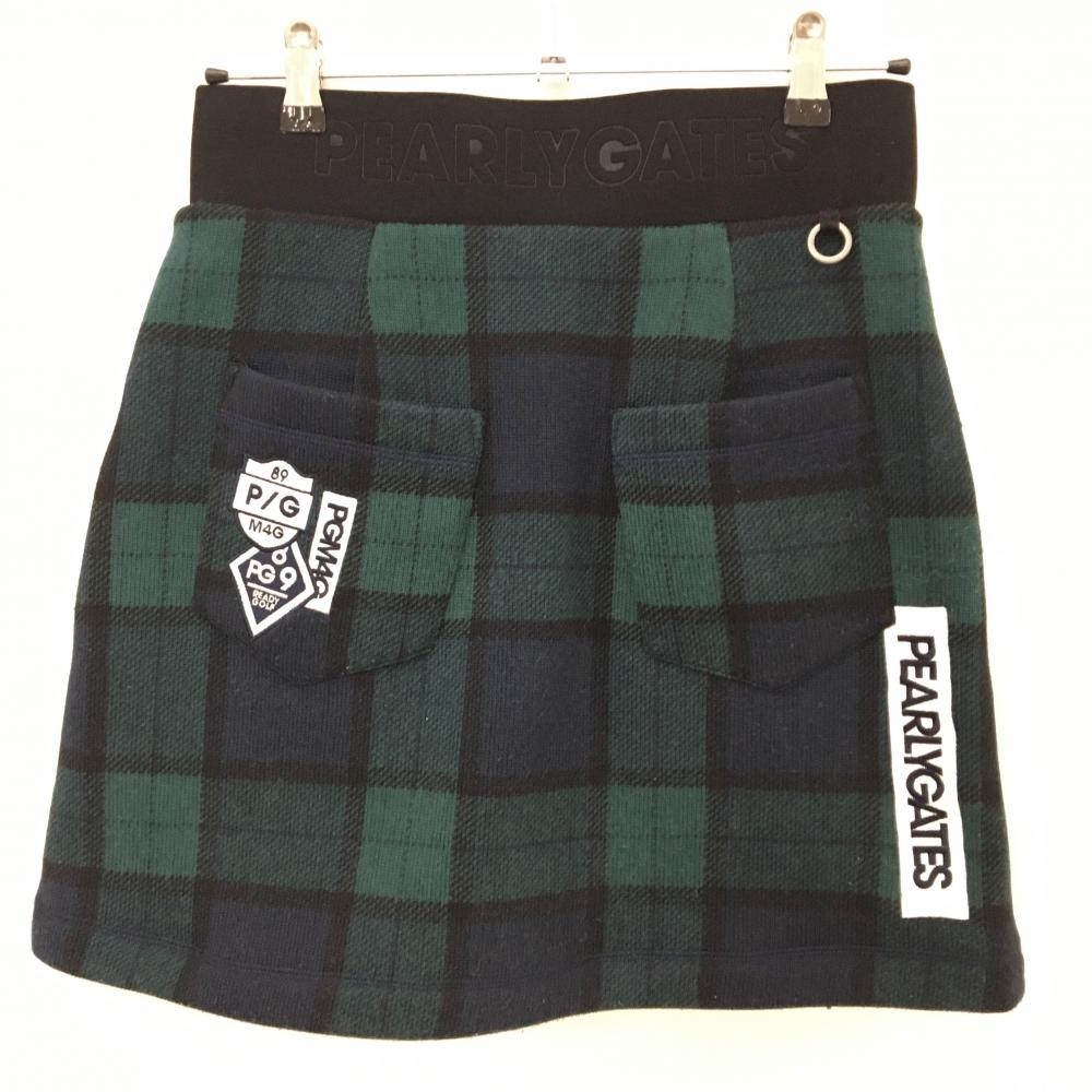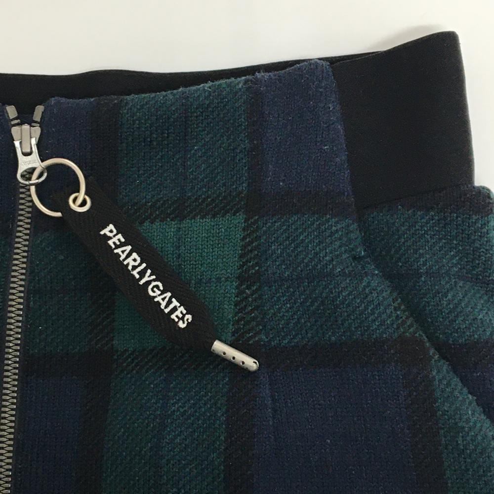 【美品】パーリーゲイツ ニットスカート グリーン×ネイビー チェック 裏起毛 レディース 1(M) ゴルフウェア PEARLY GATES