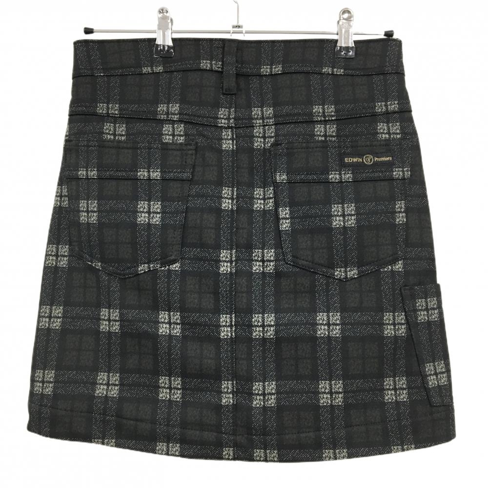 【超美品】エドウィンプレミア スカート 黒×ベージュ チェック 裏起毛 レディース 7 ゴルフウェア EDWIN GOLF