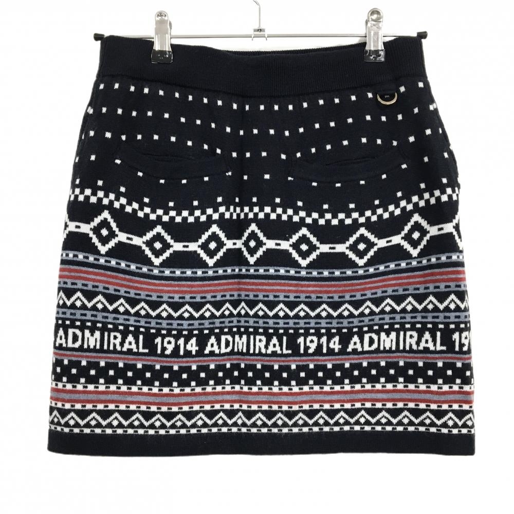 【美品】アドミラル ニットスカート ダークネイビー×白 スクエアドット 総柄 ウール混 レディース M ゴルフウェア Admiral