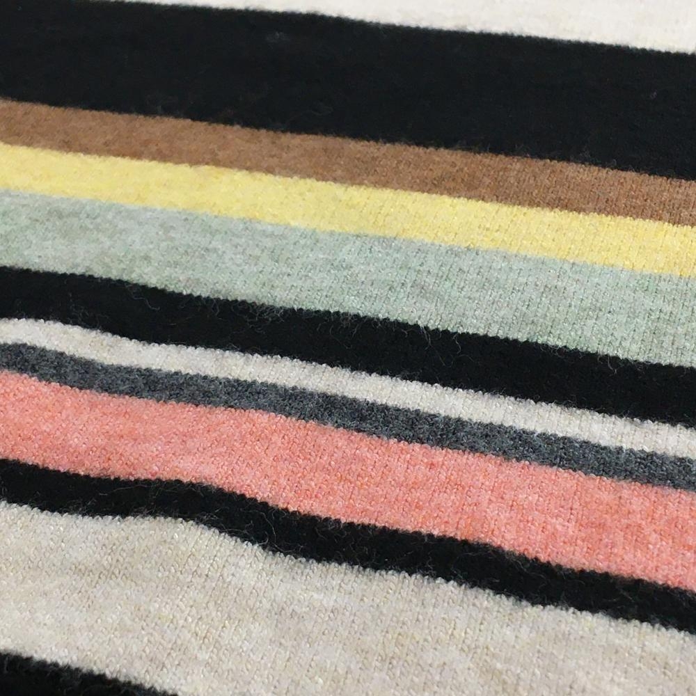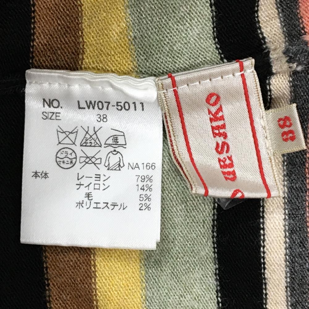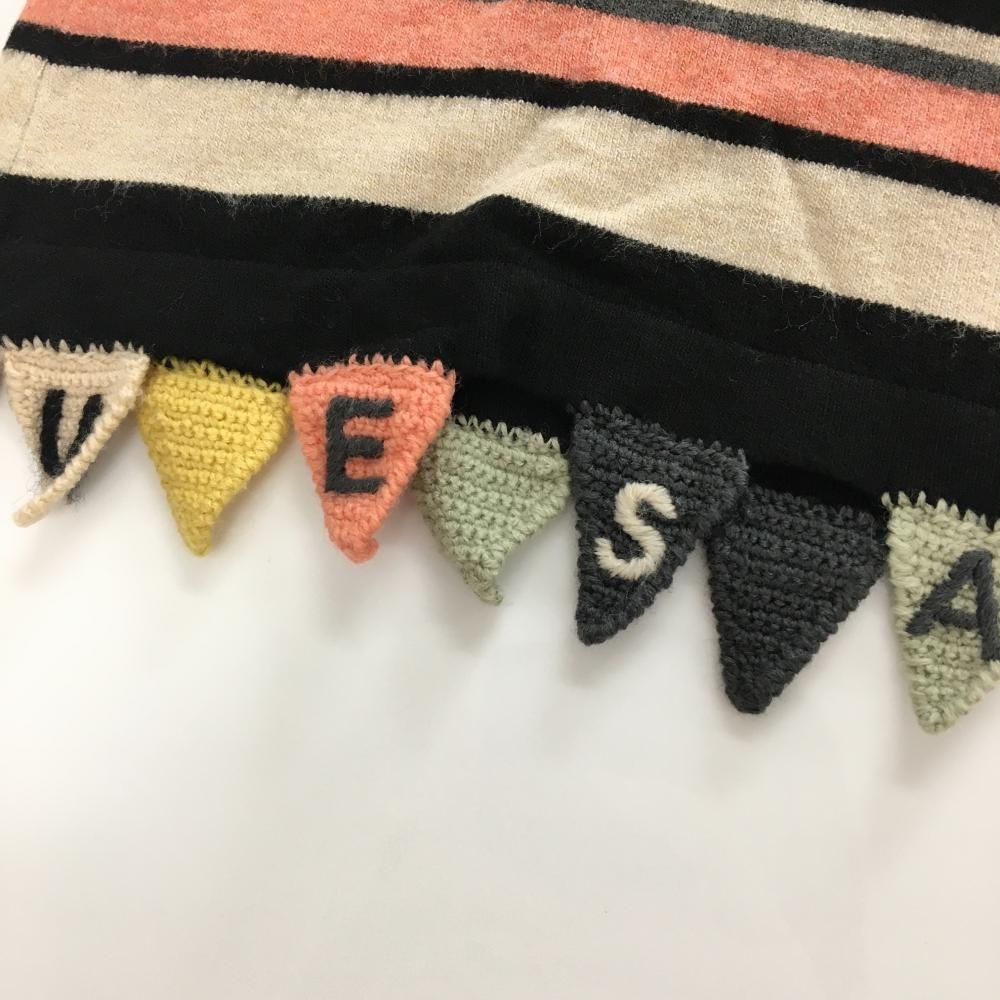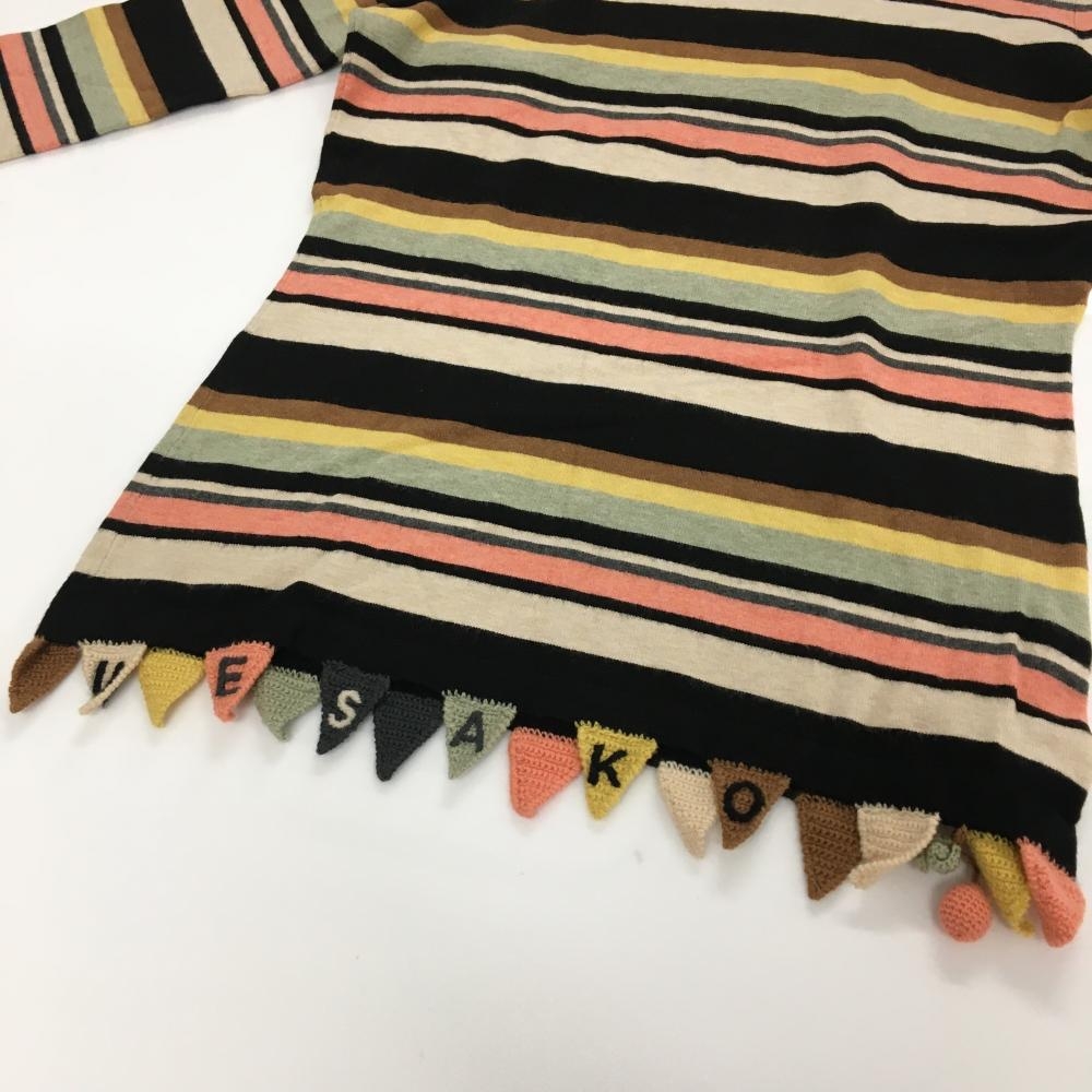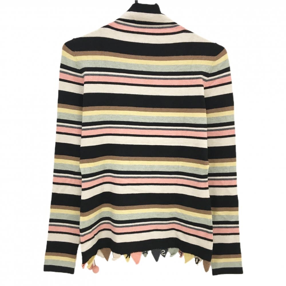 【美品】ミエコウエサコ タートルネックセーター ベージュ×黒 ボーダー 裾サクランボ ニット レディース 38(S) ゴルフウェア M・U SPORTS