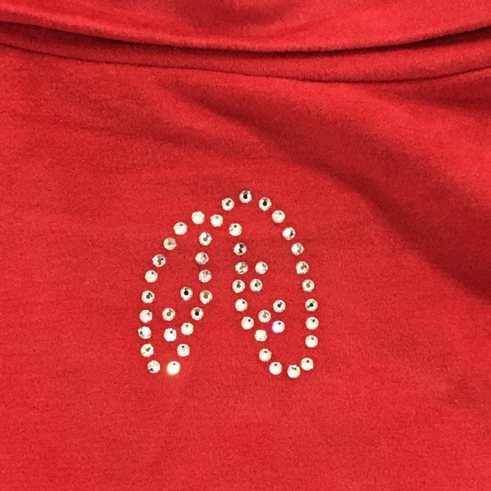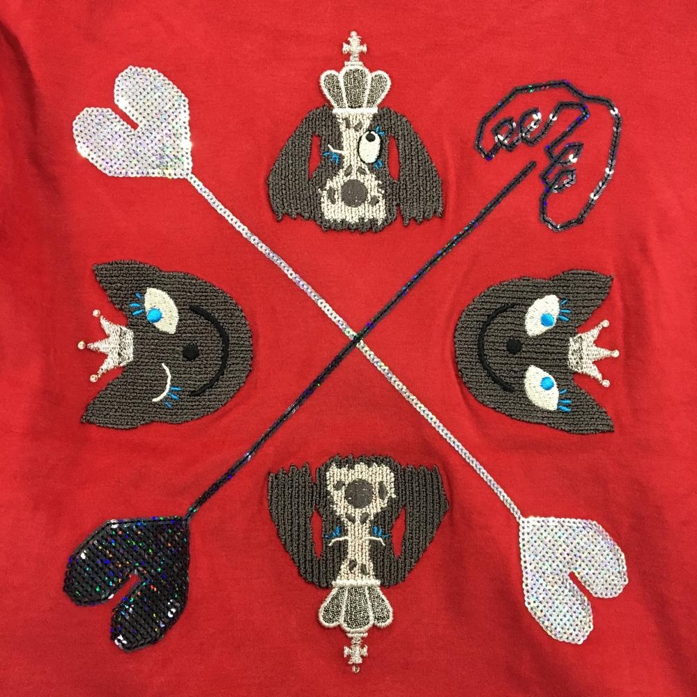 【超美品】ノイジーノイジー 長袖ハイネックシャツ レッド 微起毛 スパンコール 刺しゅう レディース 40(M) ゴルフウェア M・U SPORTS