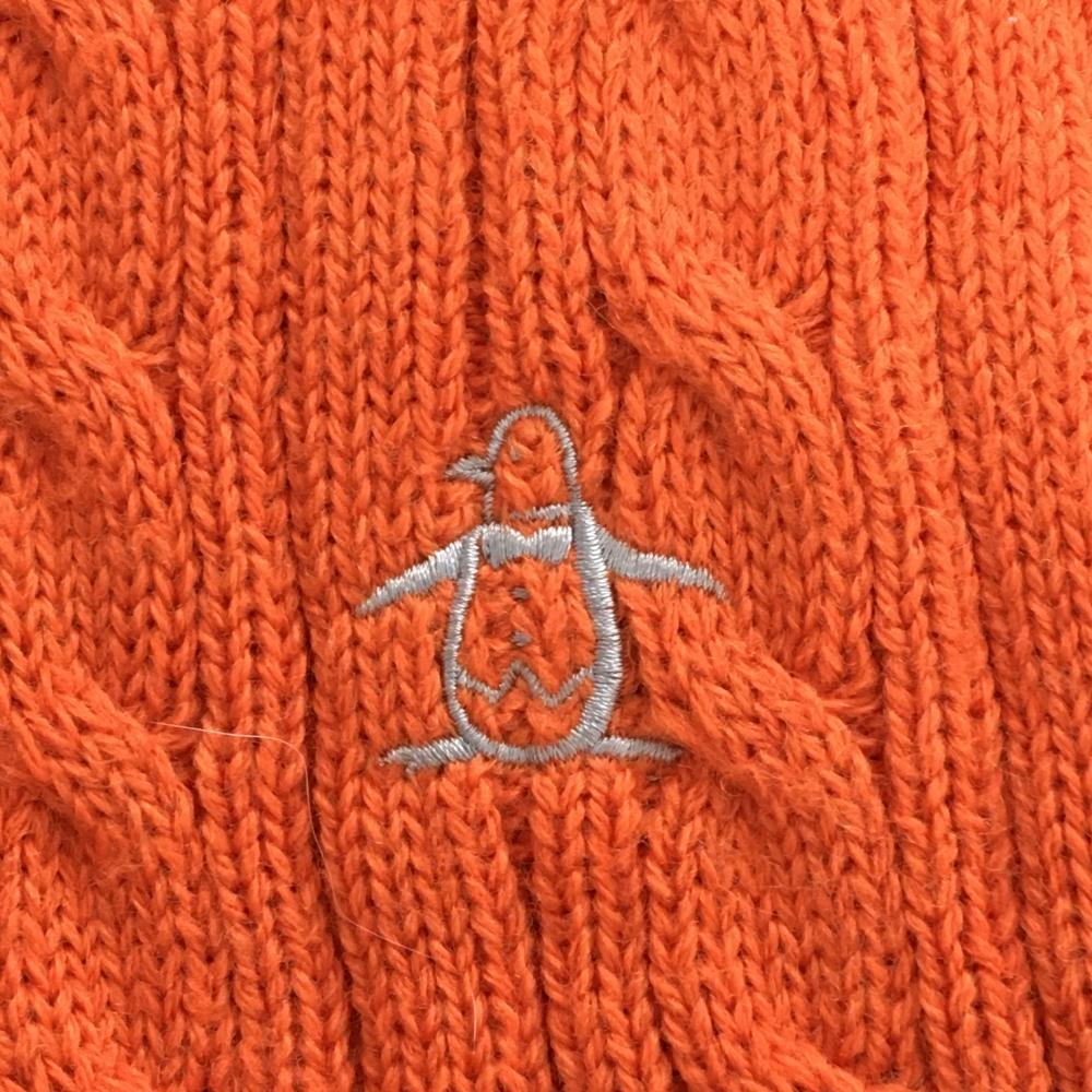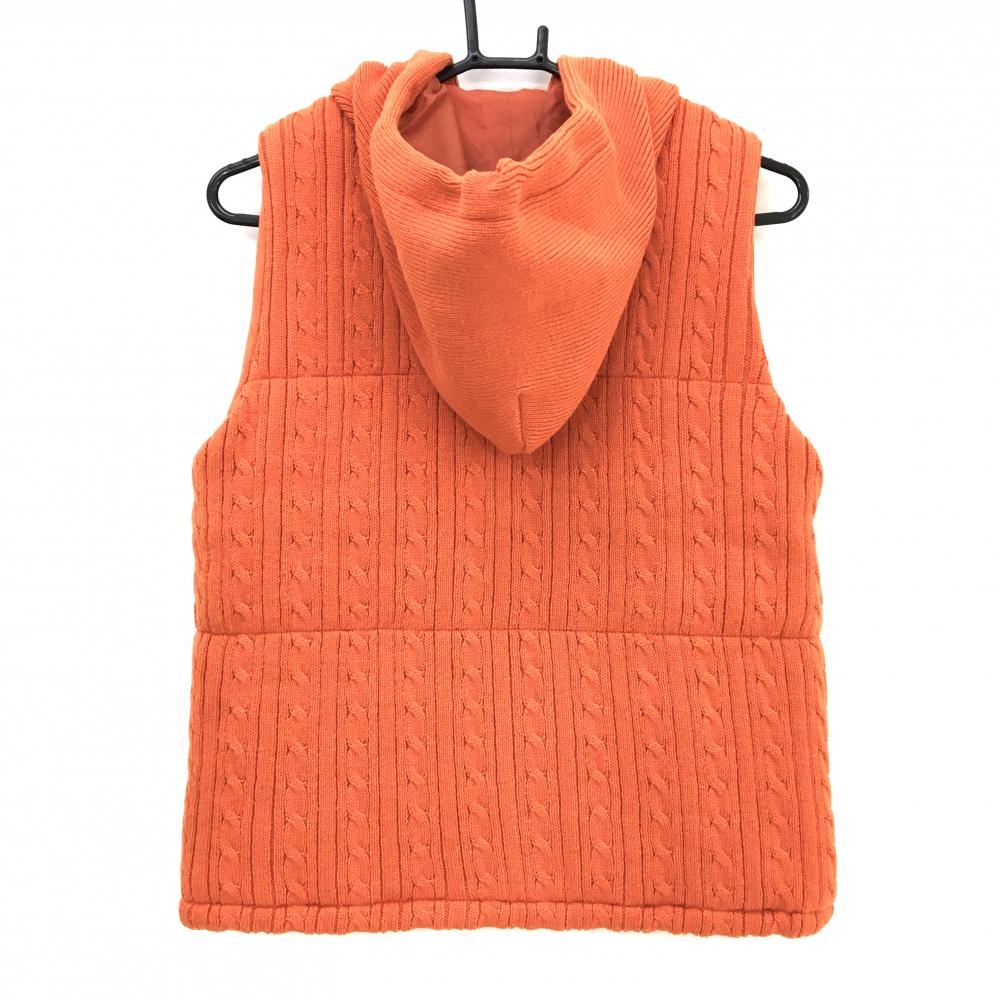 【超美品】マンシングウェア 中綿ニットベスト オレンジ ケーブル編み フード レディース M ゴルフウェア 2023年モデル Munsingwear
