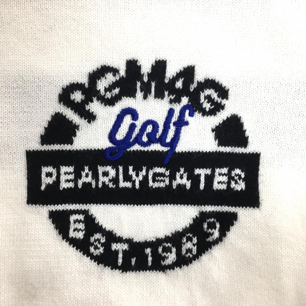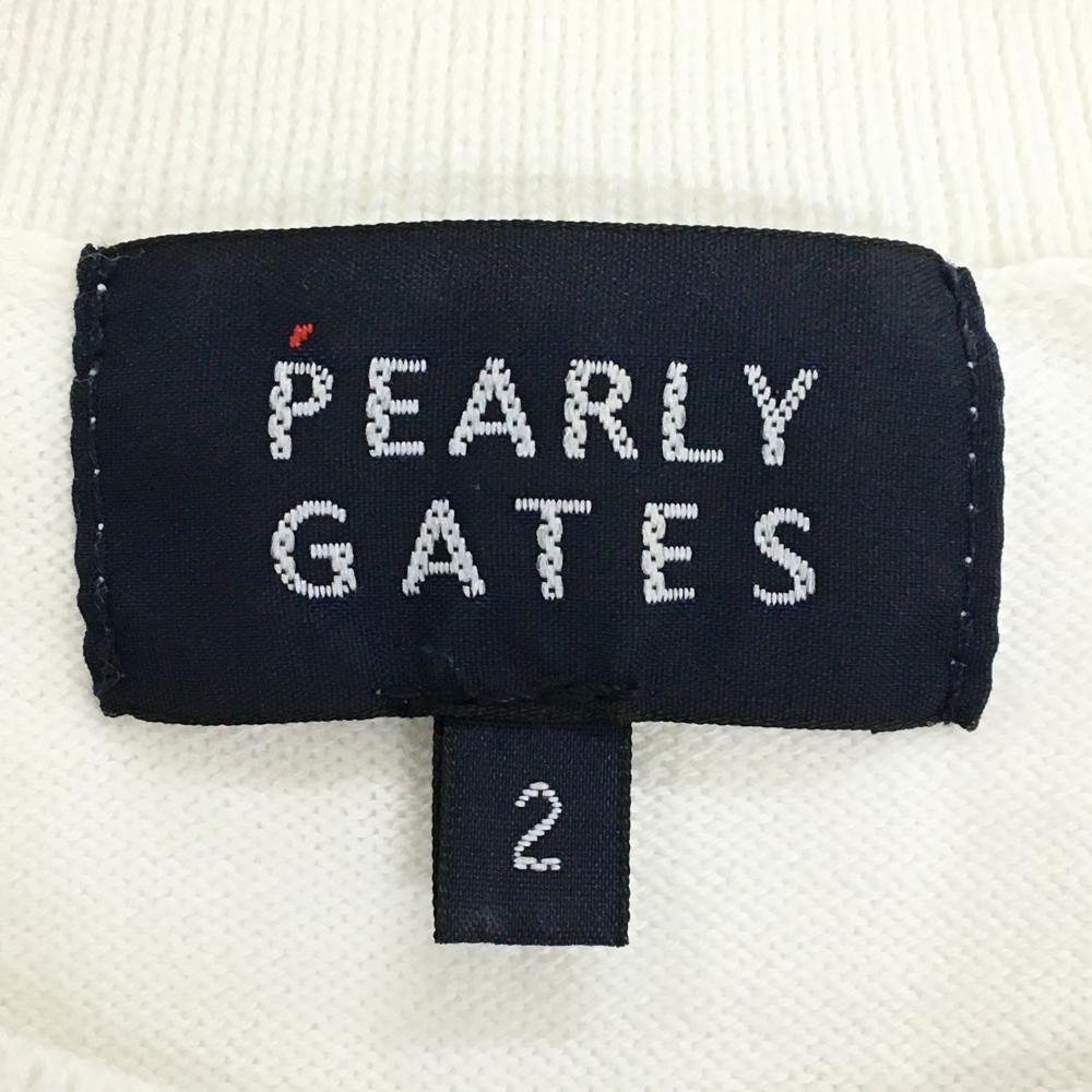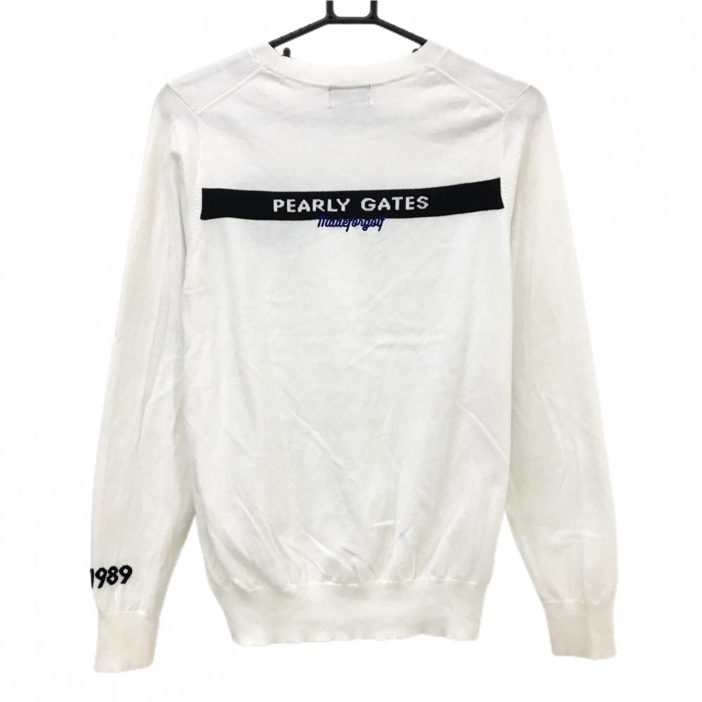 【美品】パーリーゲイツ セーター 白×ネイビー コットン100% バックロゴ レディース 2(L) ゴルフウェア PEARLY GATES