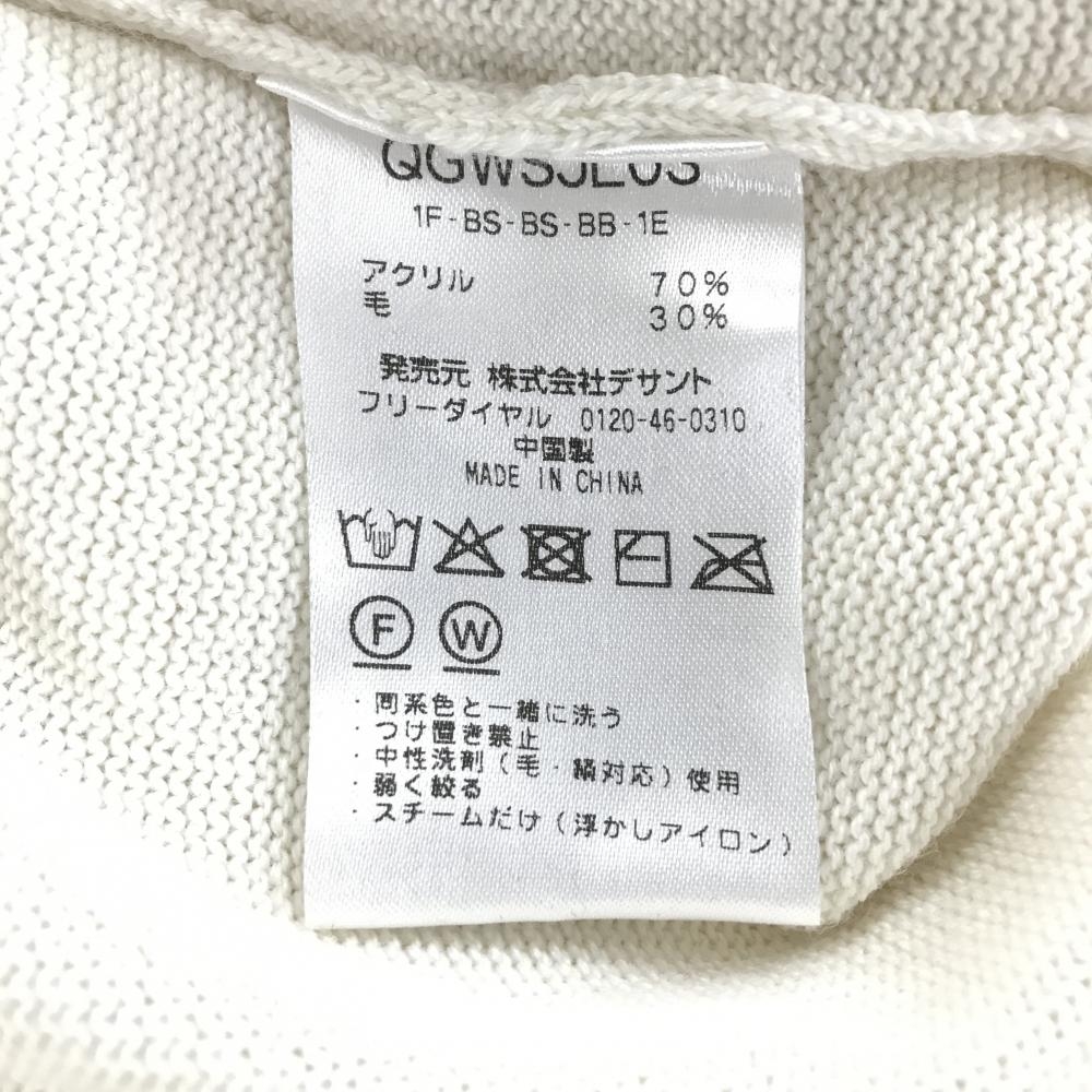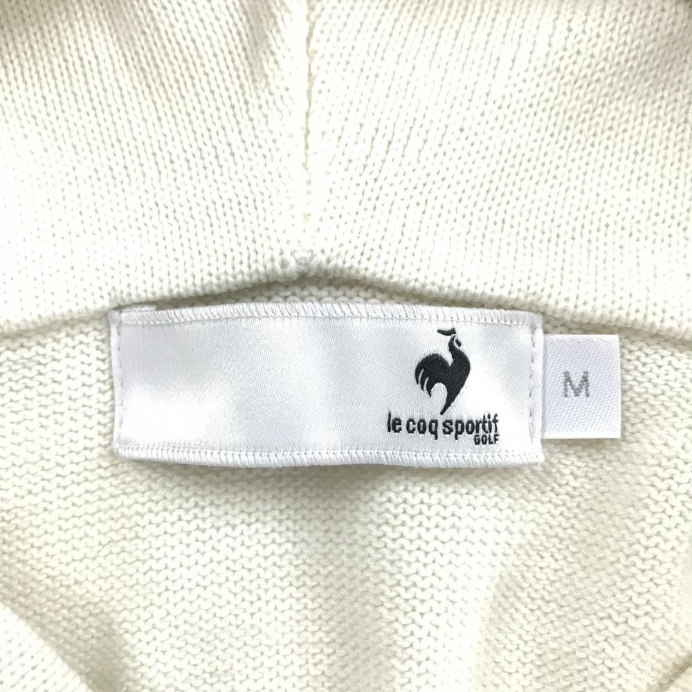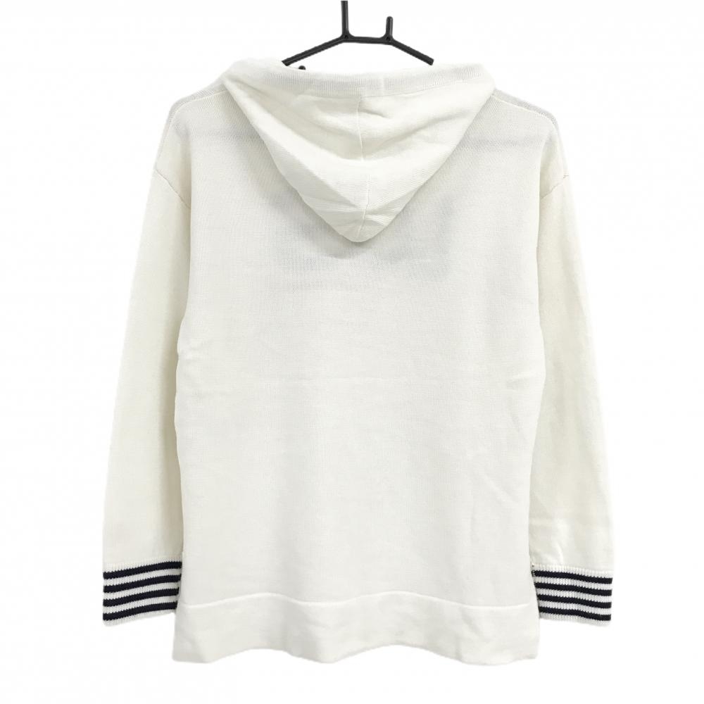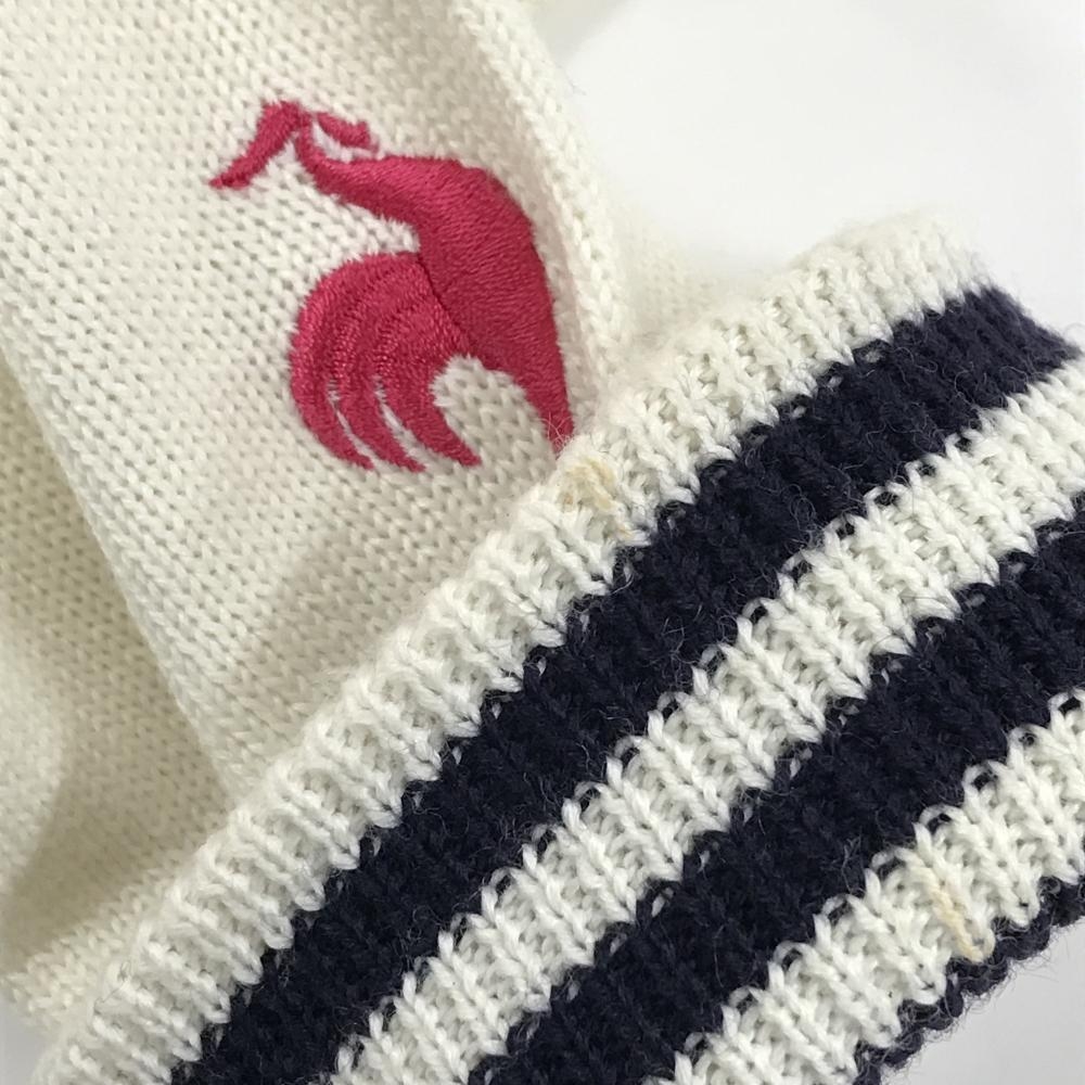 ルコック ニットパーカー アイボリー×ネイビー 袖口ライン ウール混 セーター レディース M ゴルフウェア le coq sportif