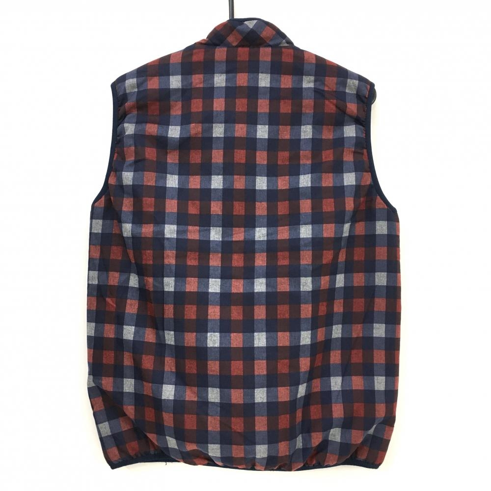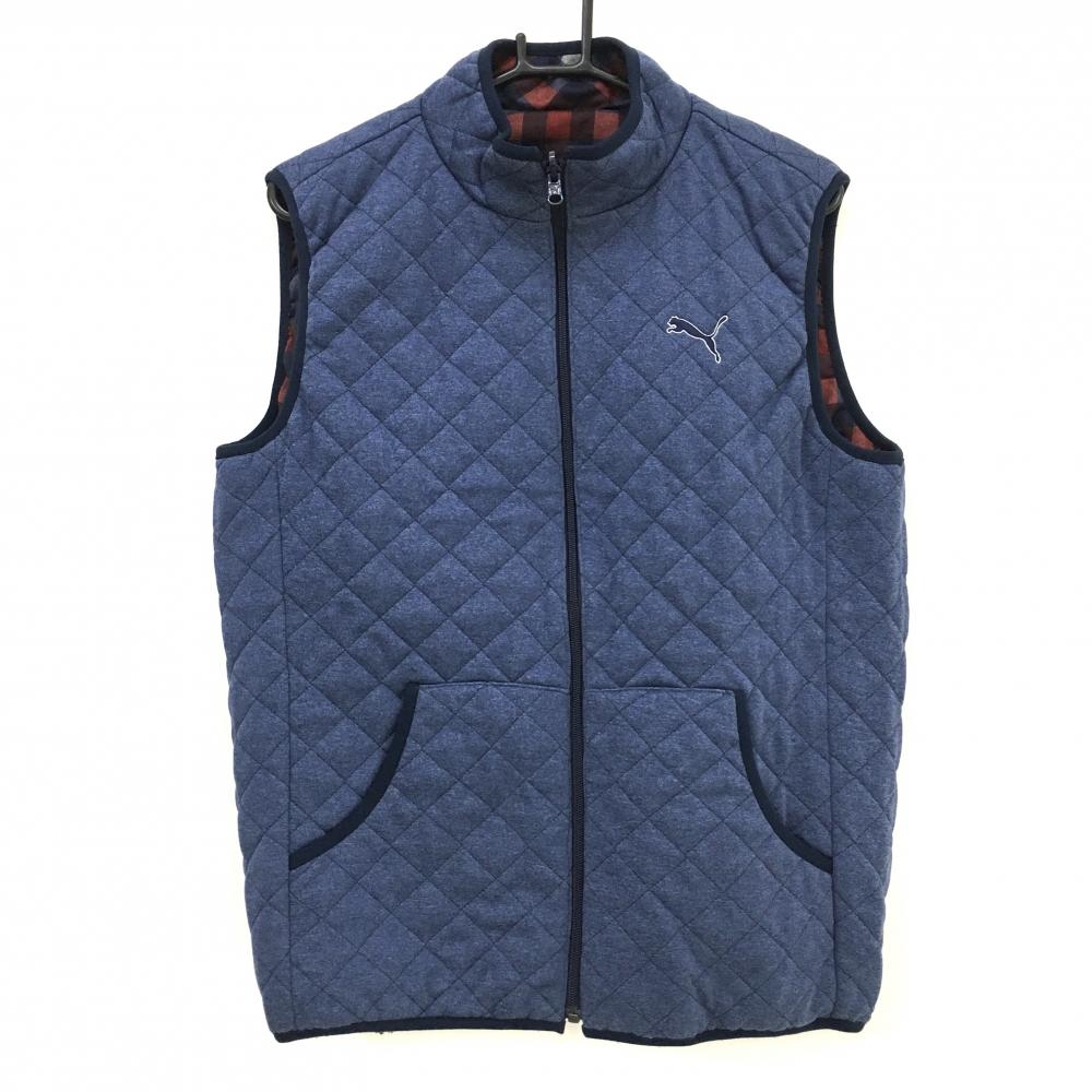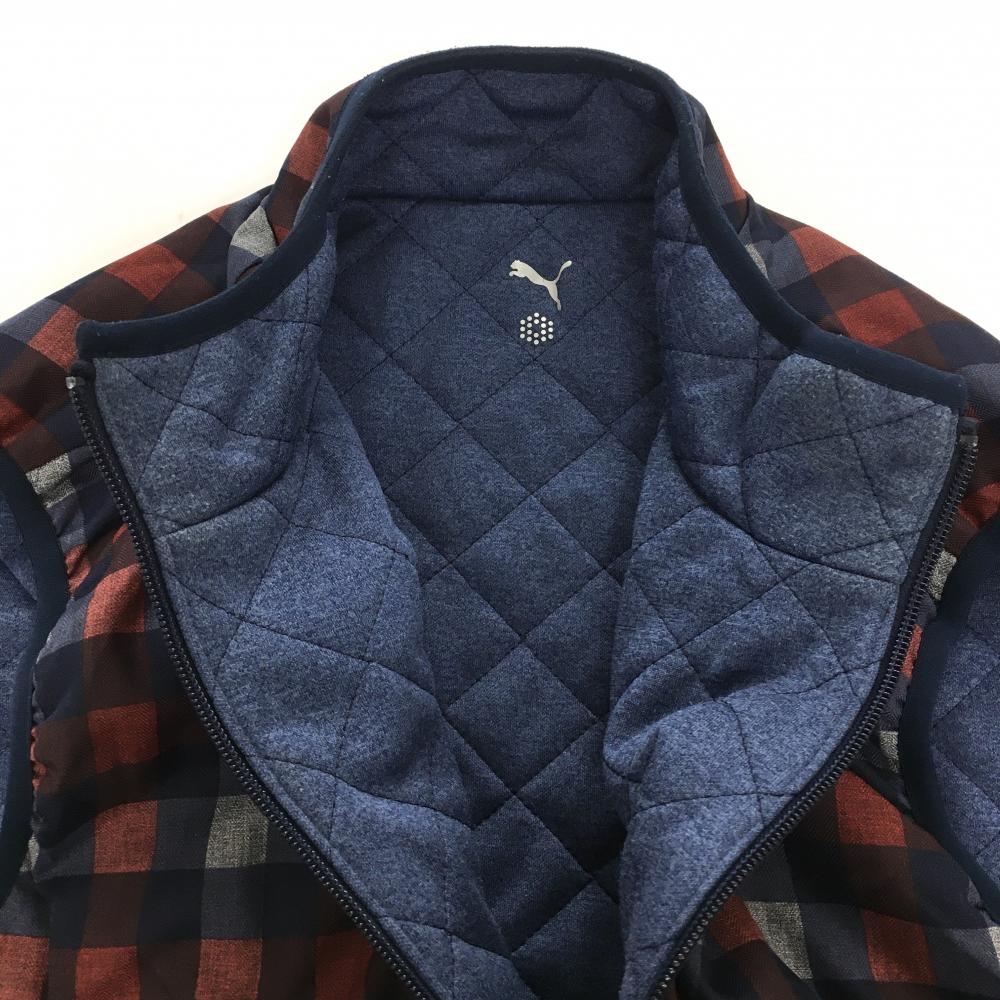 【美品】プーマ 中綿リバーシブルベスト レッド×ネイビー ブロックチェック 片面キルティング メンズ XL ゴルフウェア PUMA