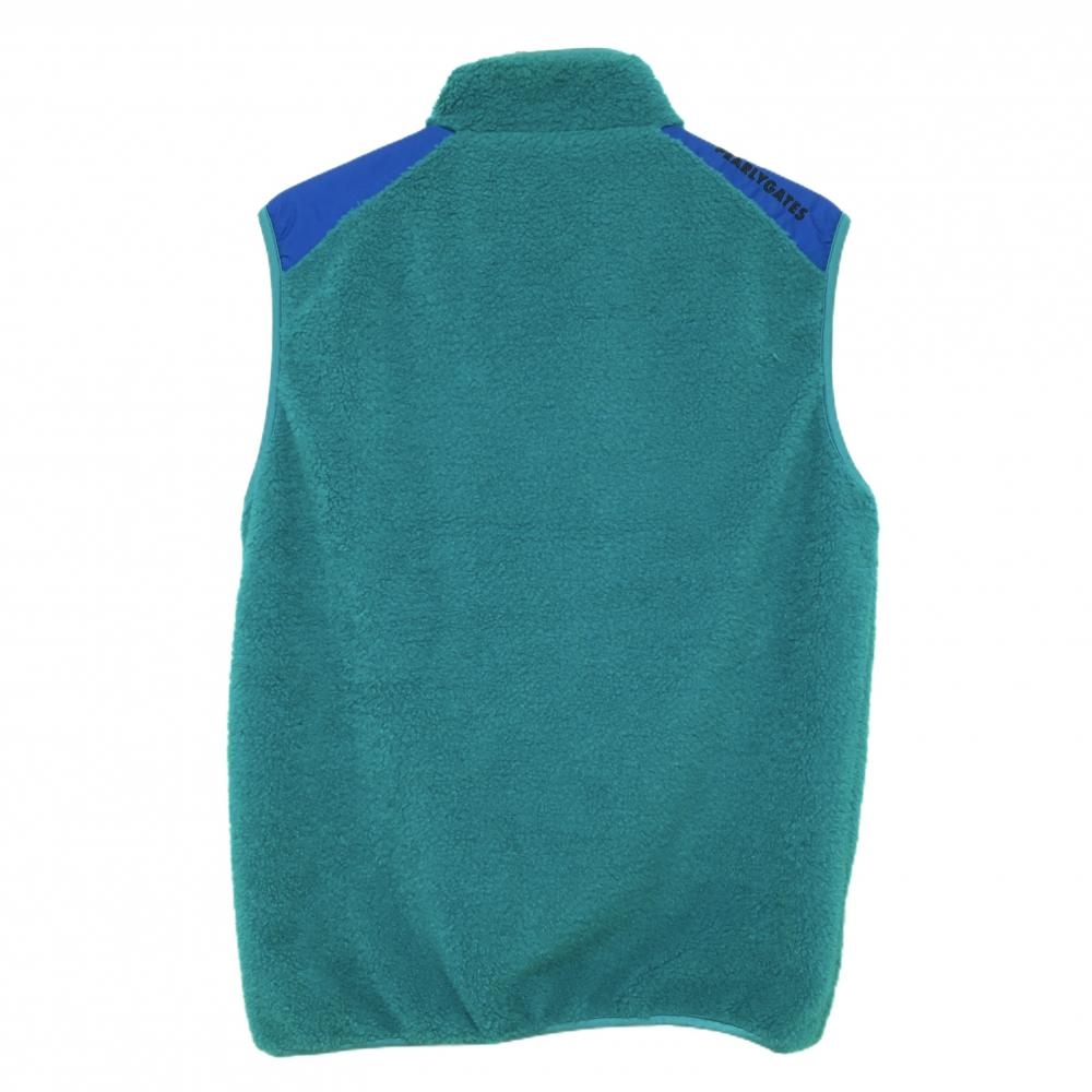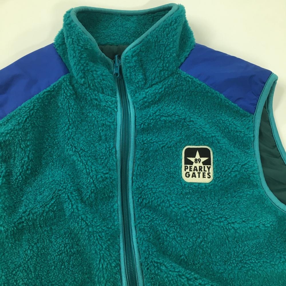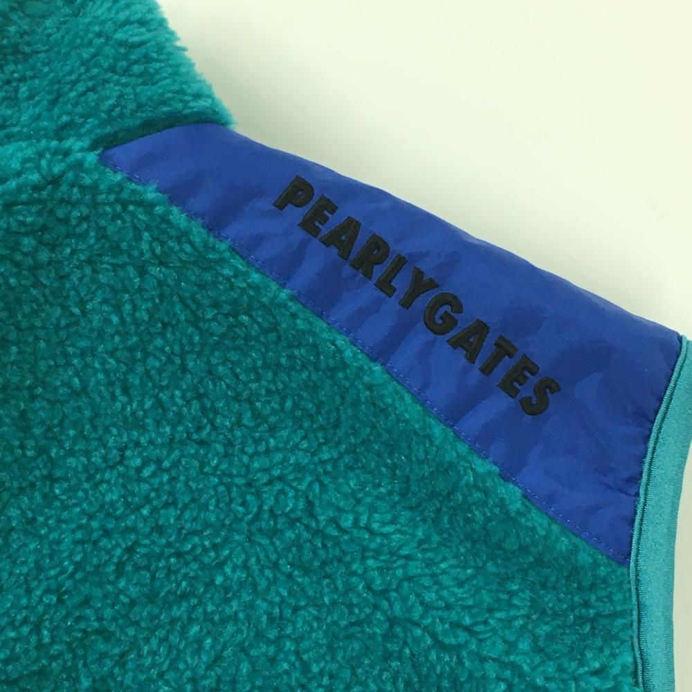 【美品】パーリーゲイツ ボアベスト グリーン×ブルー 肩切替 メンズ 5(L) ゴルフウェア PEARLY GATES