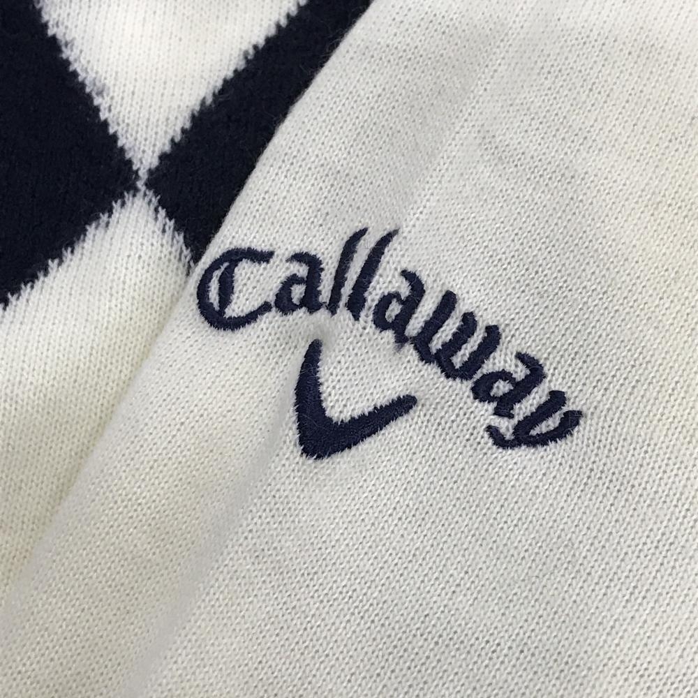 【美品】キャロウェイ セーター アイボリー×黒 アーガイル柄 Vネック ウール混 ニット メンズ M ゴルフウェア Callaway