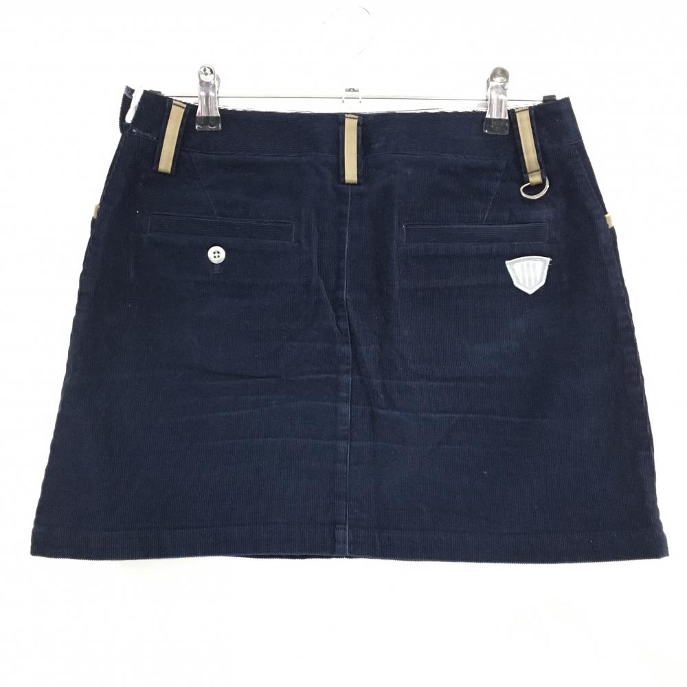 アディダス コーデュロイスカート ネイビー×ベージュ ロゴ刺しゅう レディース L/G ゴルフウェア adidas