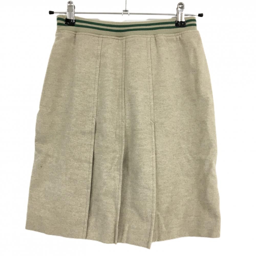 【超美品】パーリーゲイツ スカート ベージュ×グリーン ウエストゴム ウールインナーパンツ付 レディース 0(S) ゴルフウェア PEARLY GATES