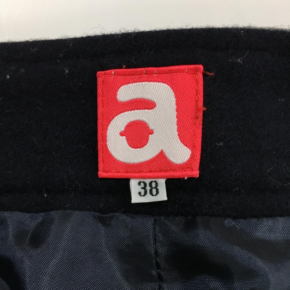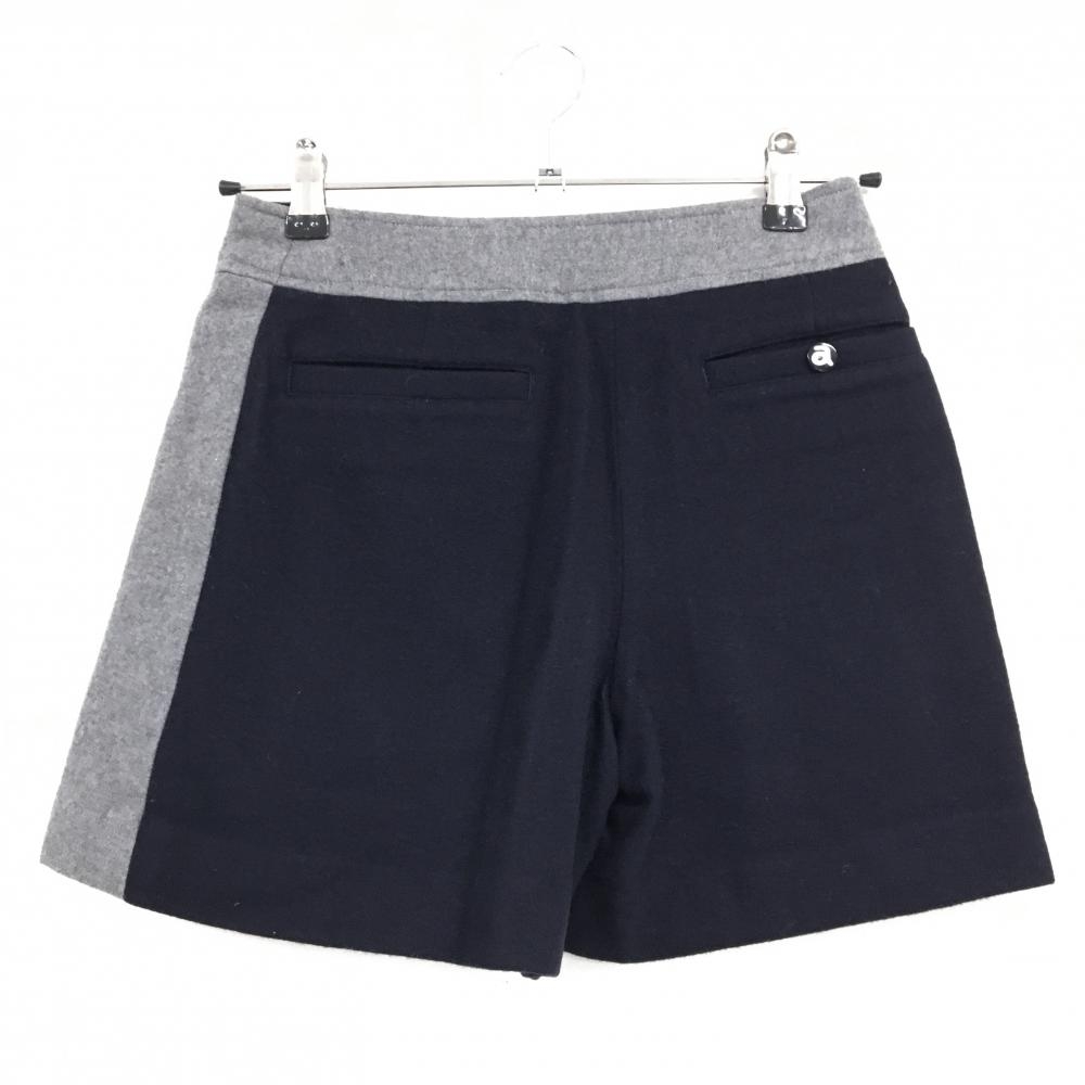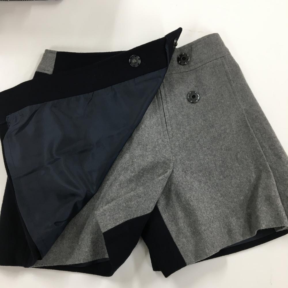 【美品】アルチビオ キュロットスカート 黒×グレー 裾ロゴ刺しゅう ウール混 レディース 38(M) ゴルフウェア archivio
