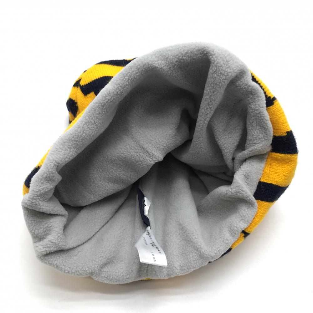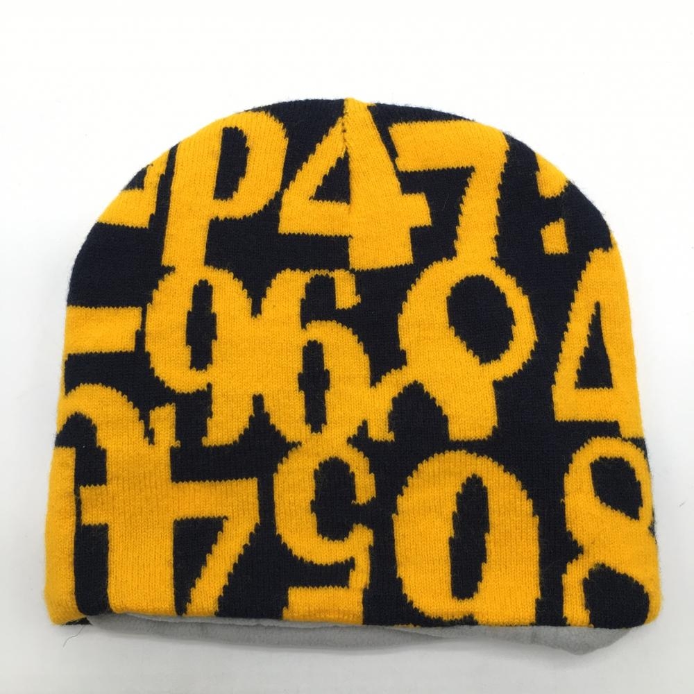 【超美品】キャロウェイ ニット帽 黒×オレンジ 数字総柄 ロゴ刺しゅう 裏フリース FR ゴルフウェア Callaway