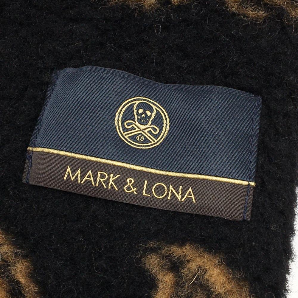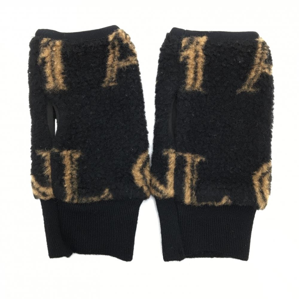 【美品】マークアンドロナ ハンドウォーマー 黒×ブラウン 英字柄 ボア FREE ゴルフウェア MARK&LONA
