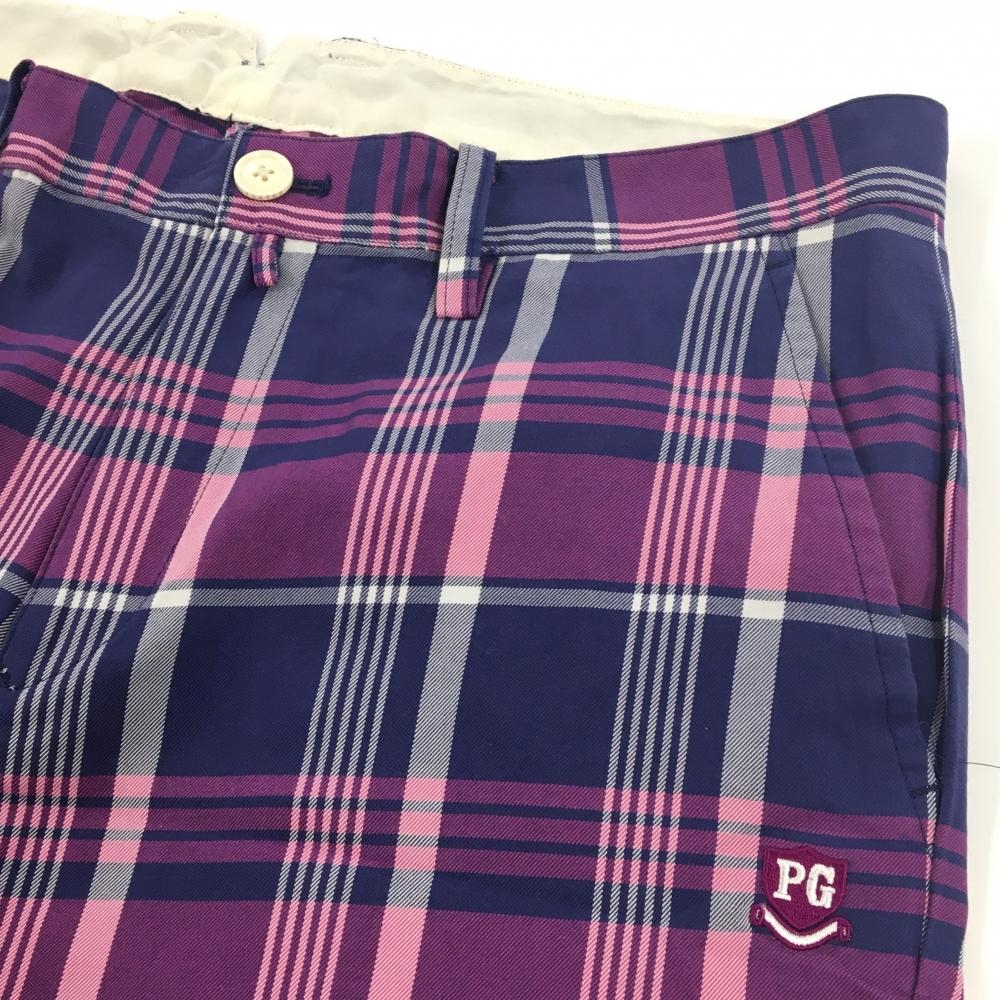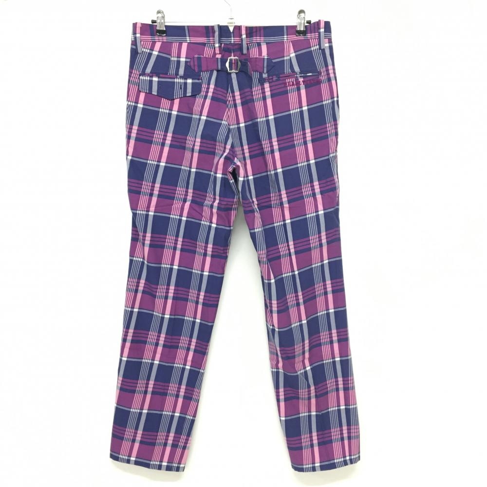 【美品】パーリーゲイツ パンツ パープル×ネイビー チェック メンズ 6(XL) ゴルフウェア PEARLY GATES