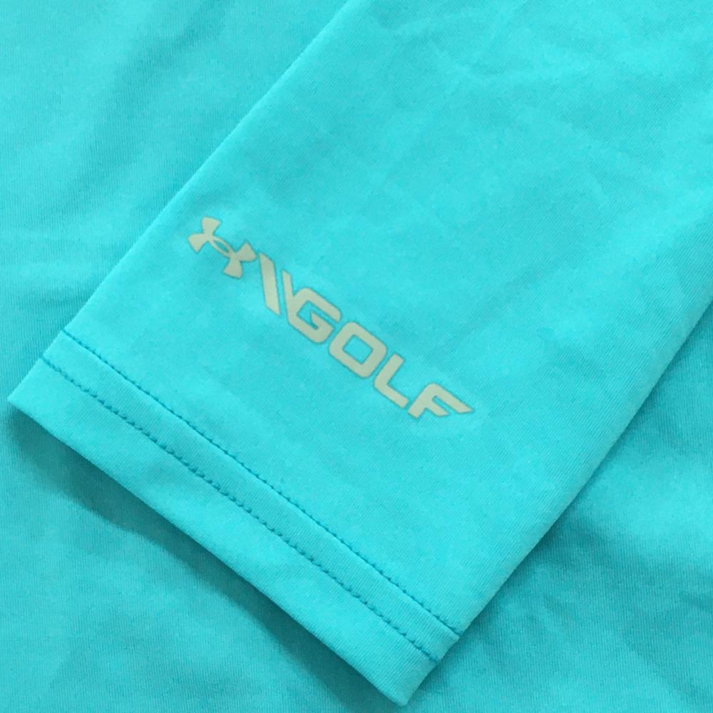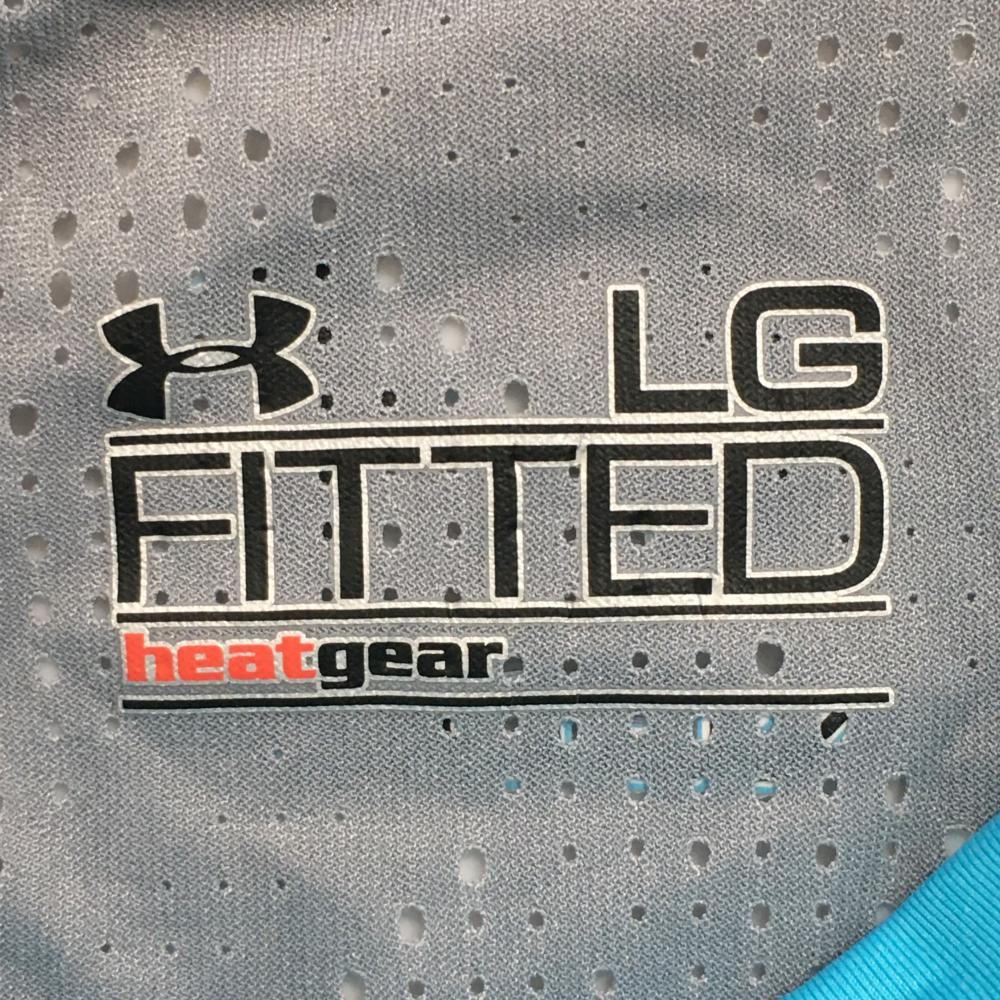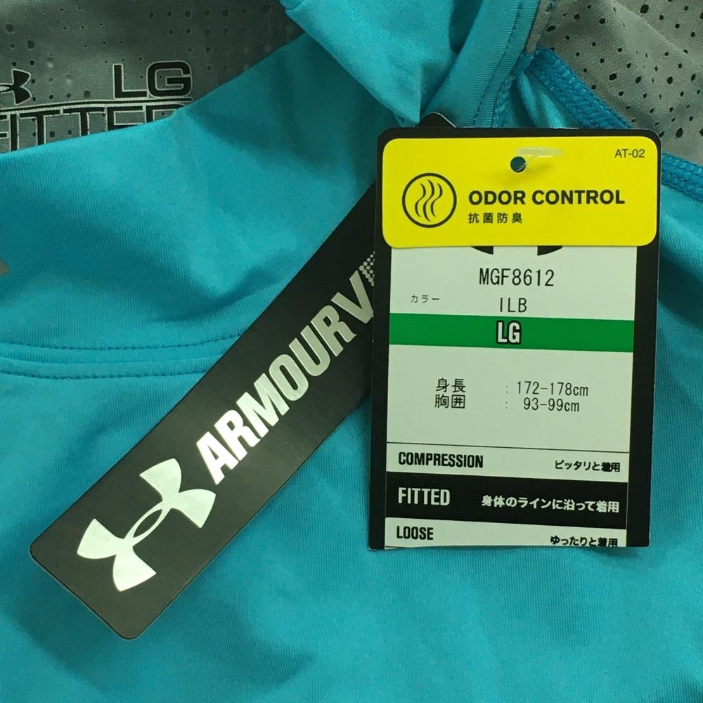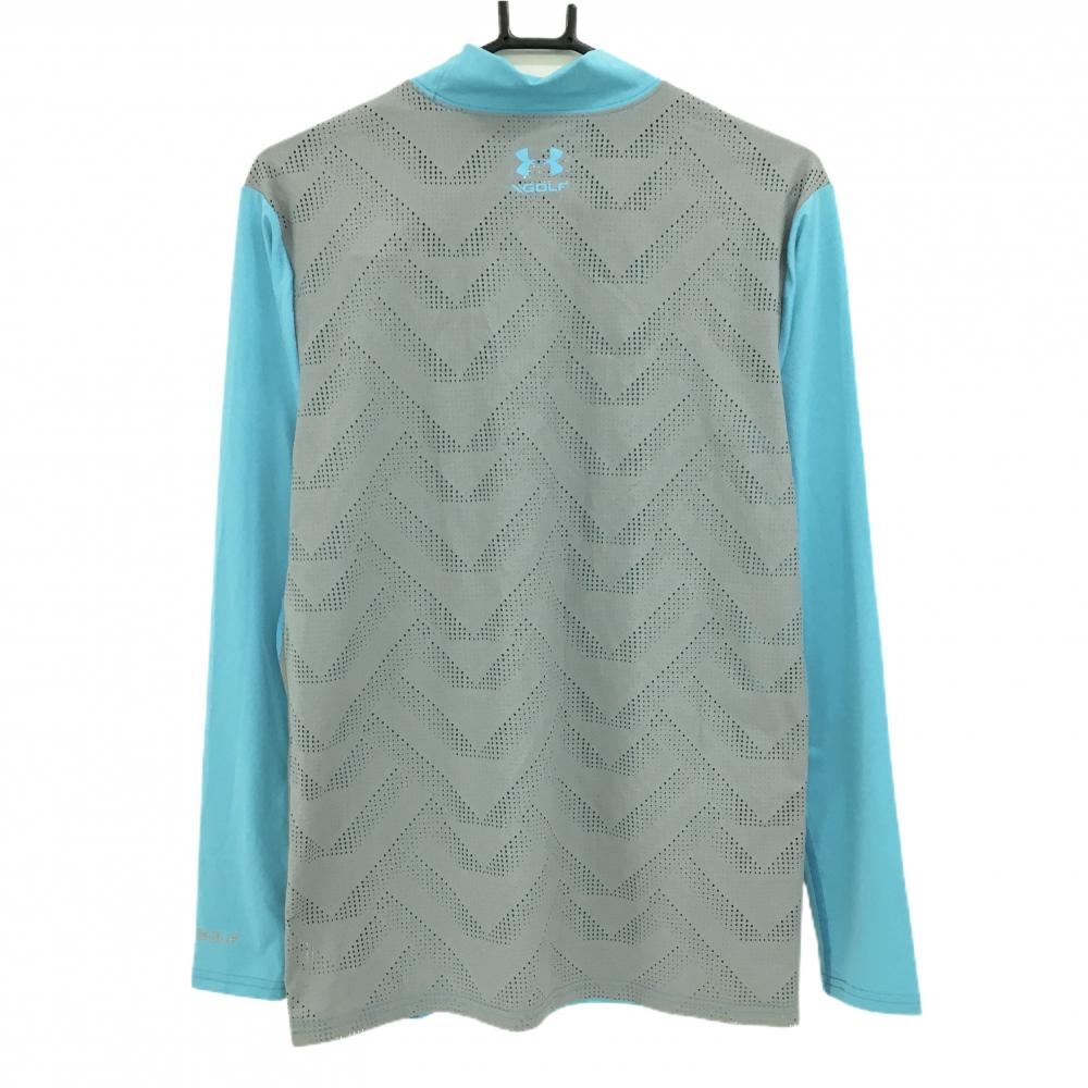 【新品】アンダーアーマー 長袖ハイネックシャツ ライトブルー×グレー 背面パンチング HEATGEAR メンズ LG ゴルフウェア UNDER ARMOUR